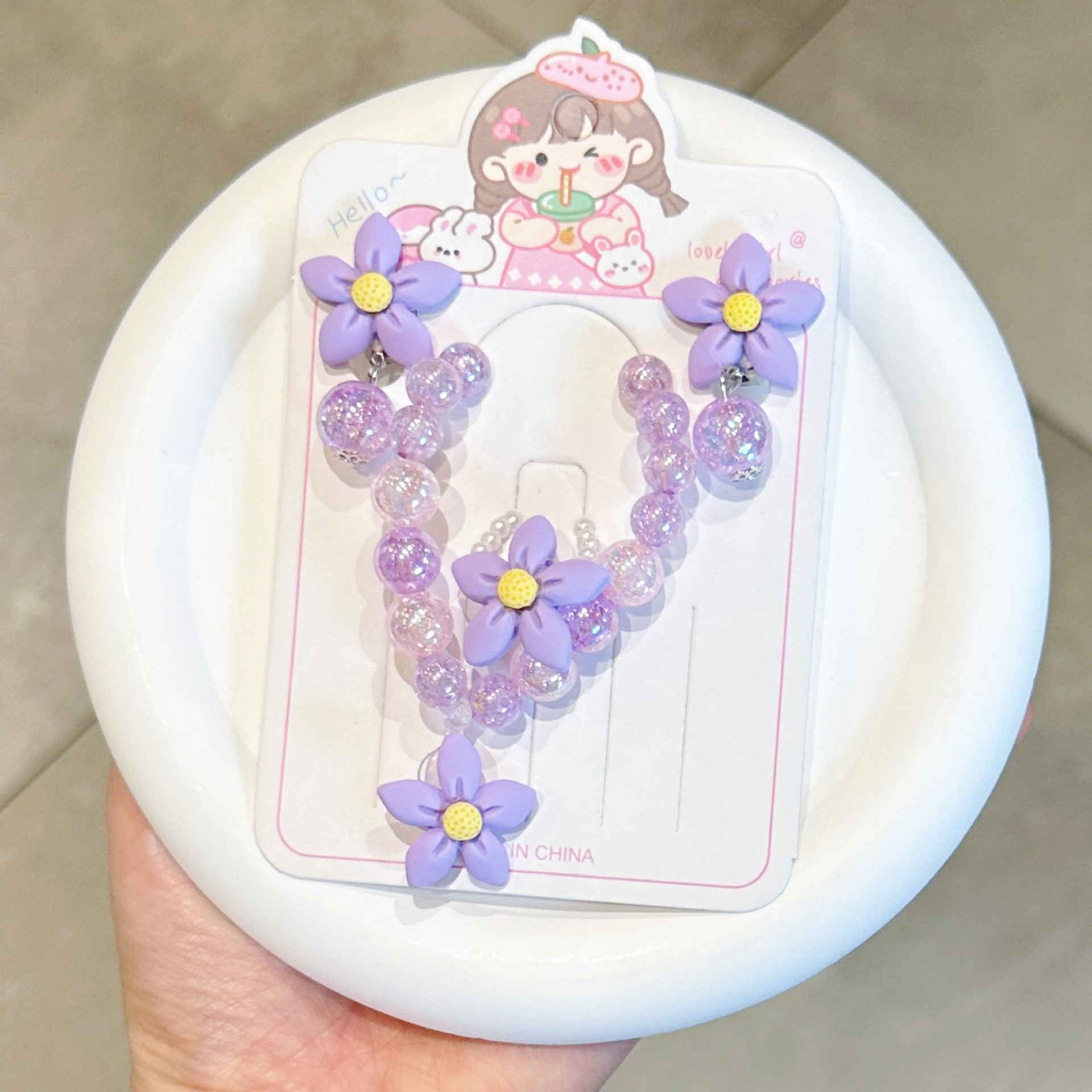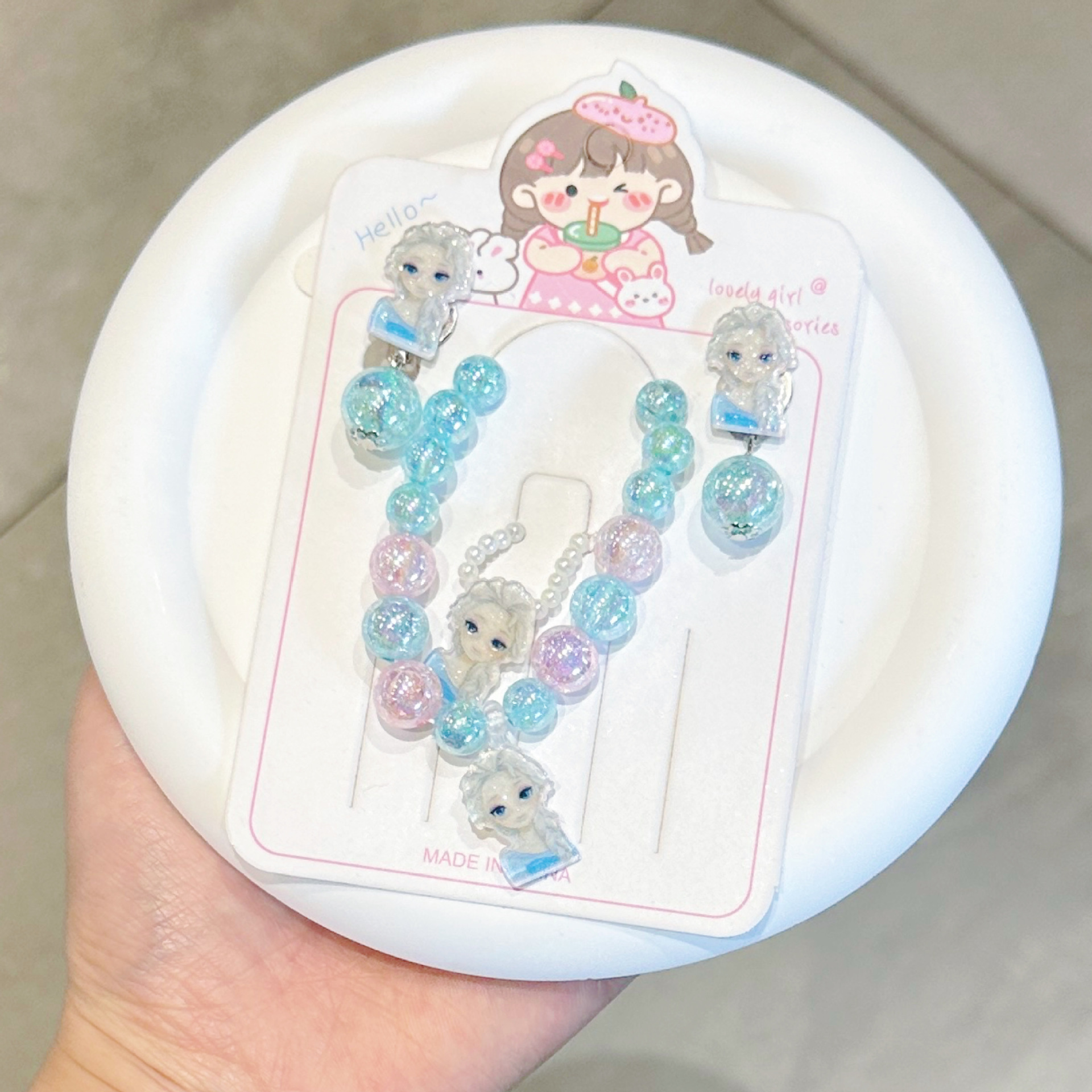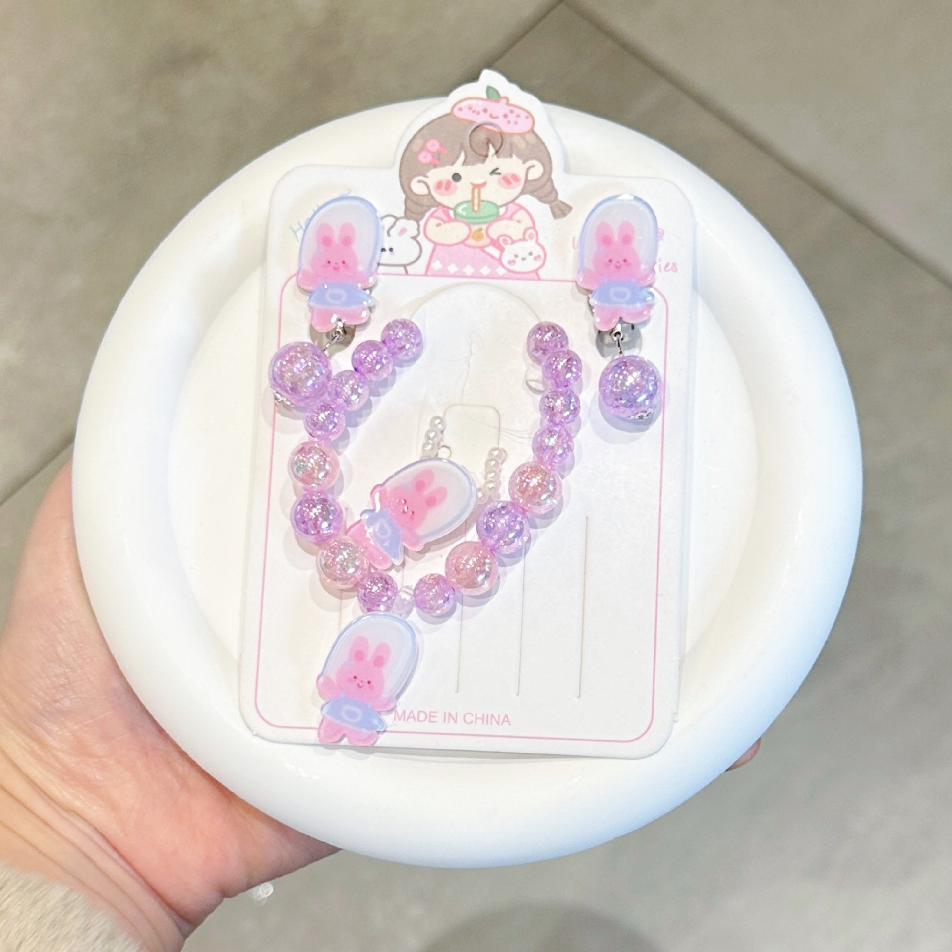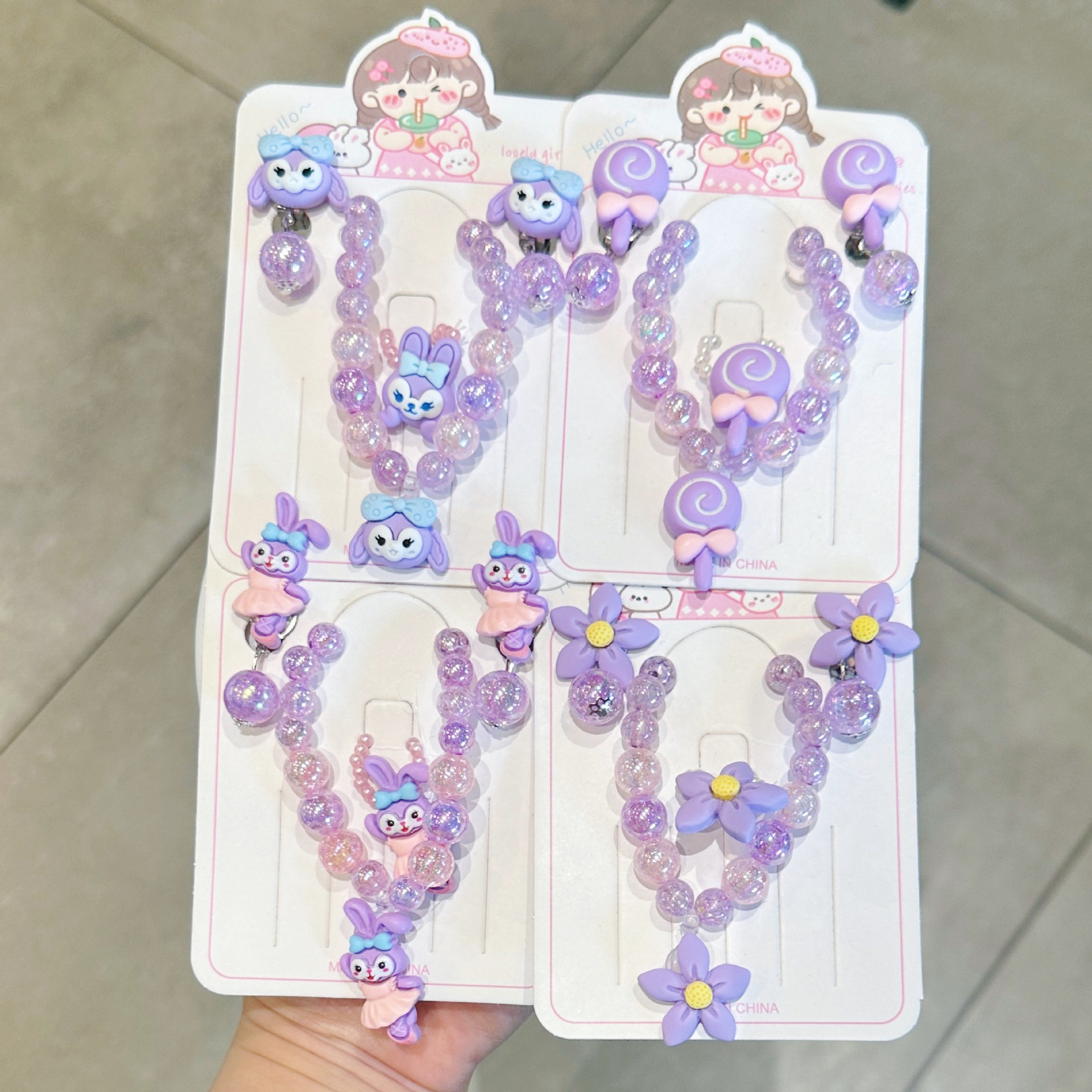 어린이 보석 귀걸이 반지 팔찌 세트 귀여운 4 조각 유치원 선물 상품 어린이 장난감스토어 가기