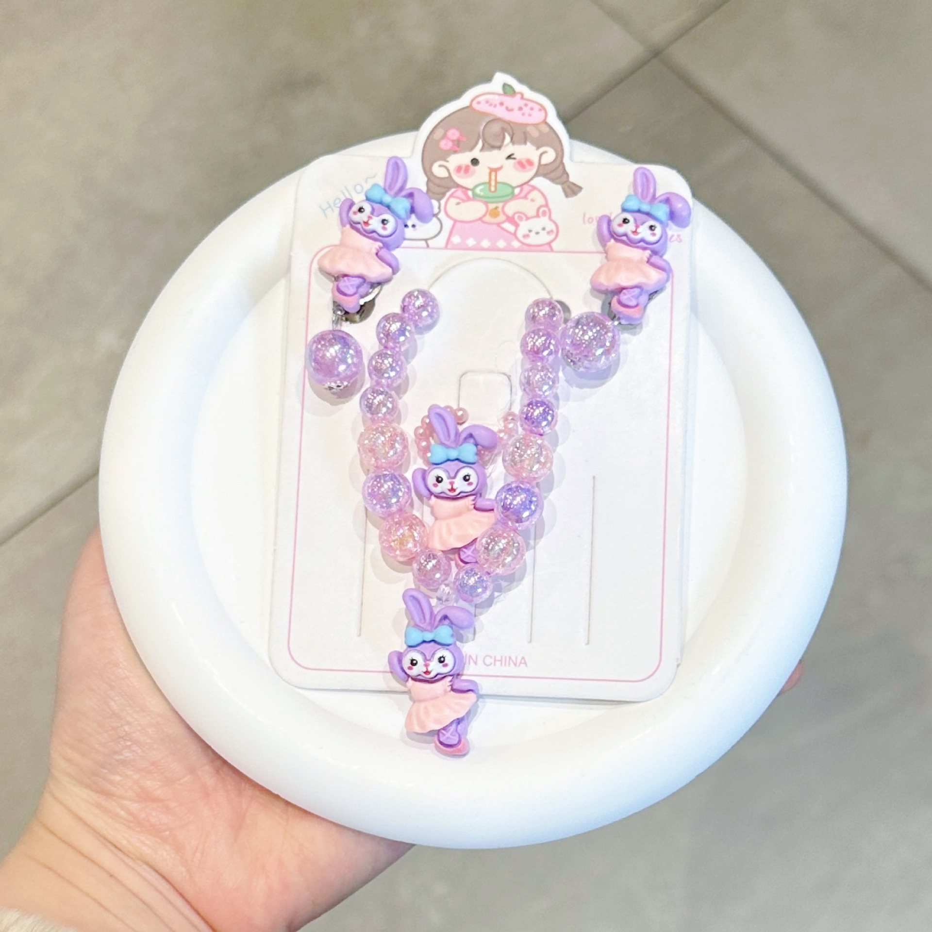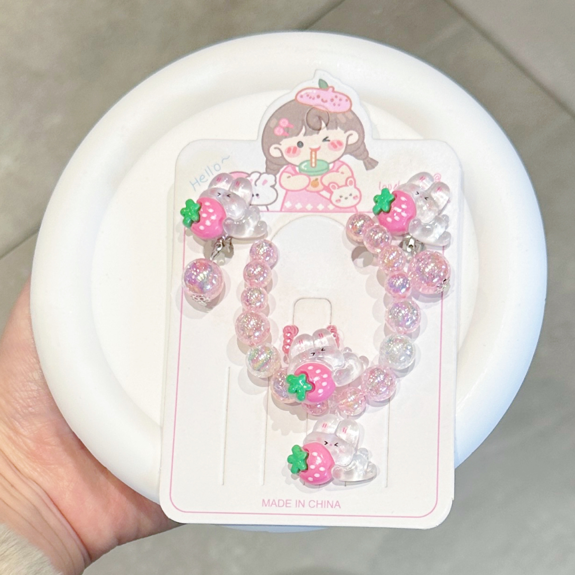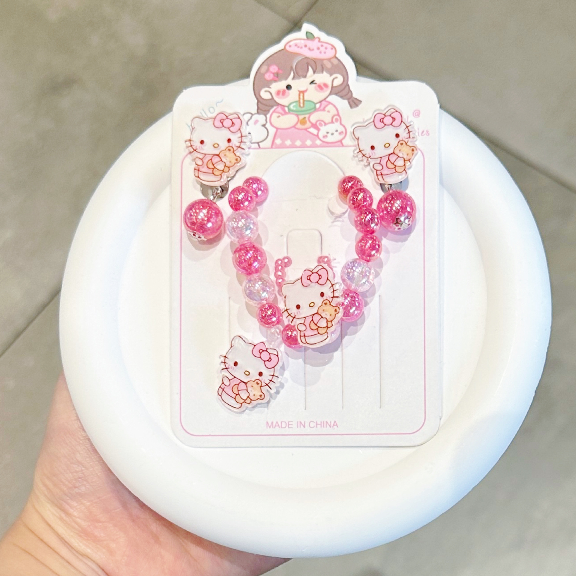 어린이 보석 귀걸이 반지 팔찌 세트 귀여운 4 조각 유치원 선물 상품 어린이 장난감