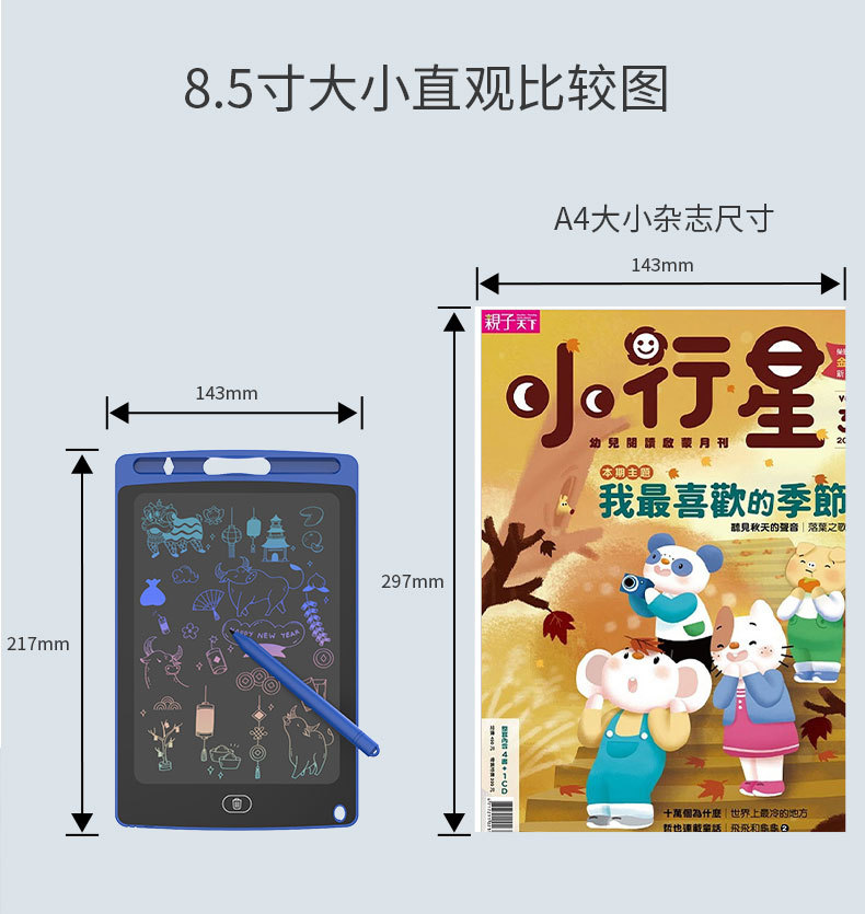 8.5 인치 어린이 LCD 드로잉 보드 LCD 필기 보드 전자 칠판 드로잉 보드 조기교육 온라인 수업 손그림 쓰기 학습스토어 가기