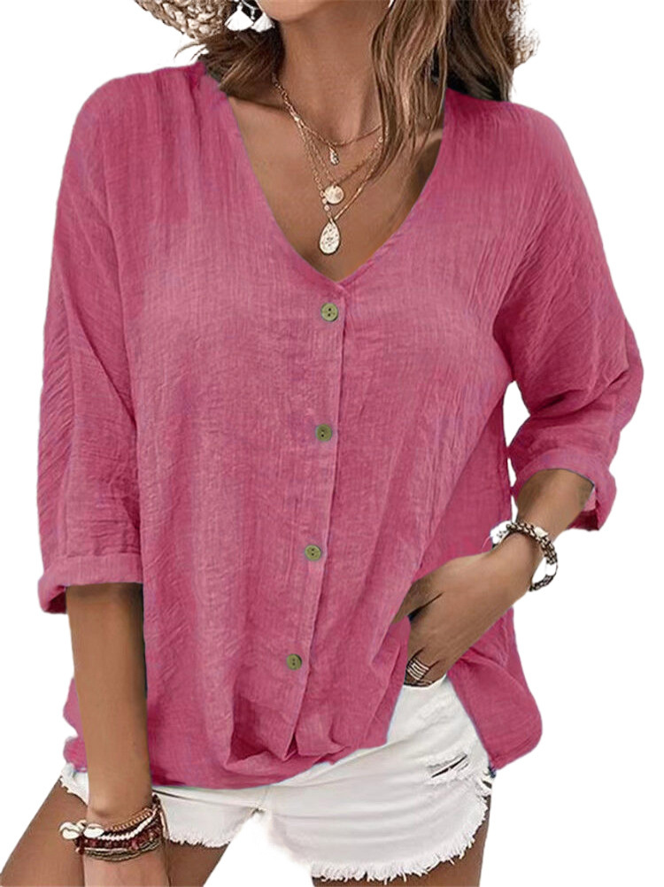 아마존 이베이 크로스 보더 유럽과 미국의 대외 무역 2023V 칼라 풀오버 반팔 느슨한 여성 셔츠 캐주얼 탑