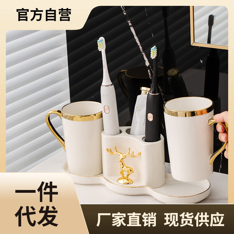 H4KE 커플 구강 세척제 컵 라이트 럭셔리 칫솔 컵 세트 가정용 세척 컵 칫솔 컵 세라믹 칫솔 보관 랙