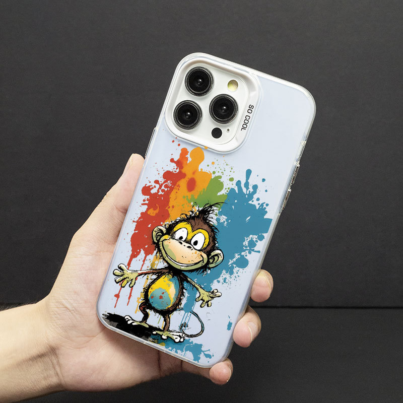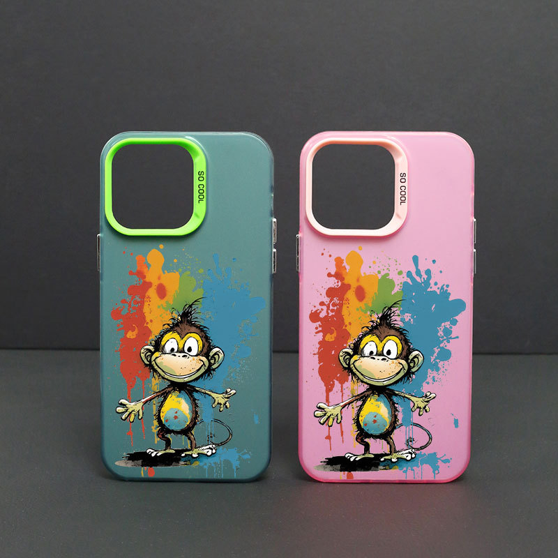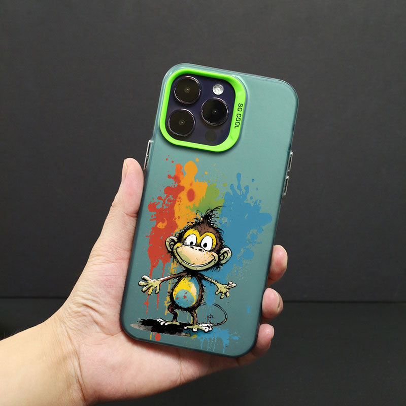 애플 14/13/12Pro 최대 낙하 방지 14PRO 스킨 스크럽 TPU 보호 커버 용 낙서 원숭이