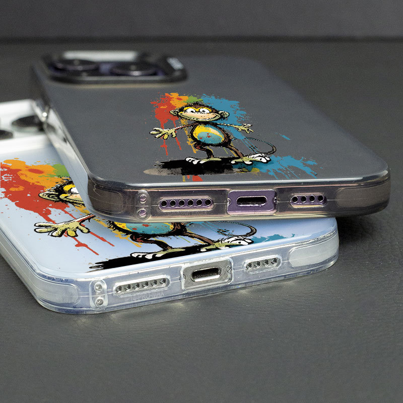 애플 14/13/12ProMAX에 적합한 그래피티 원숭이 디자인의 낙하 방지 14PRO 피부 느낌의 무광 TPU 보호 케이스
