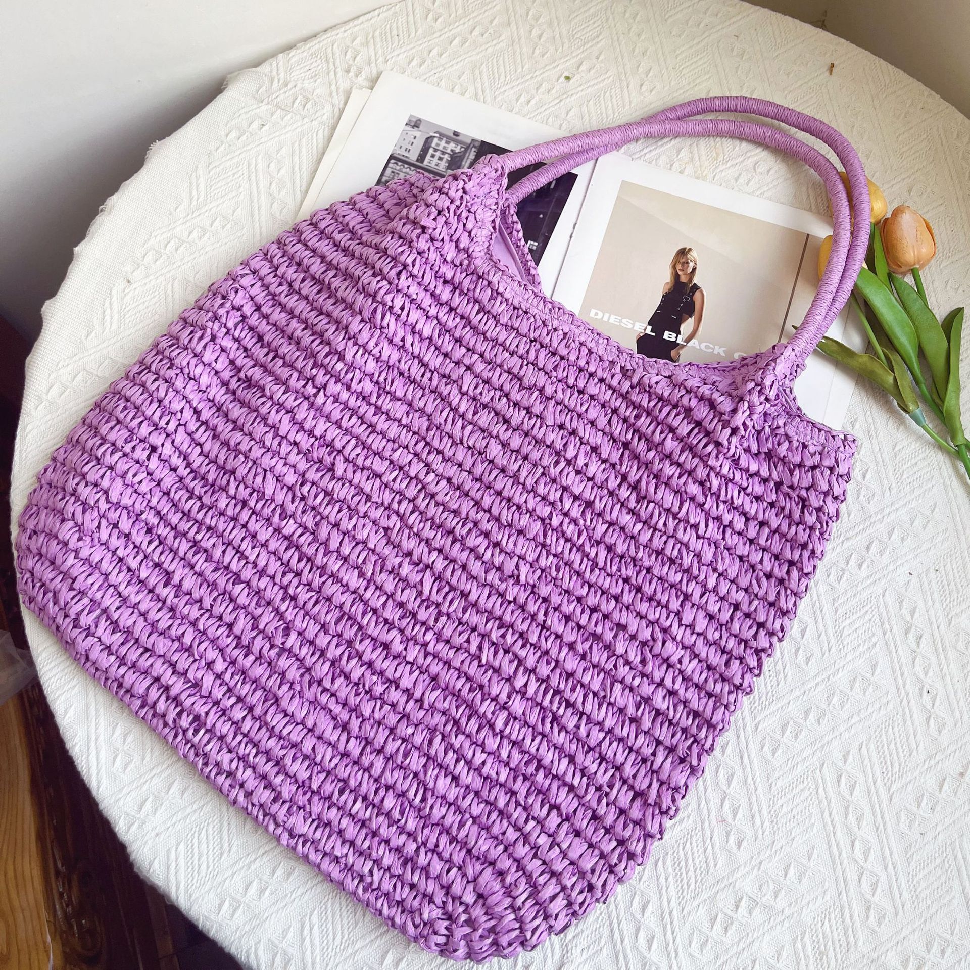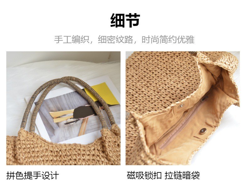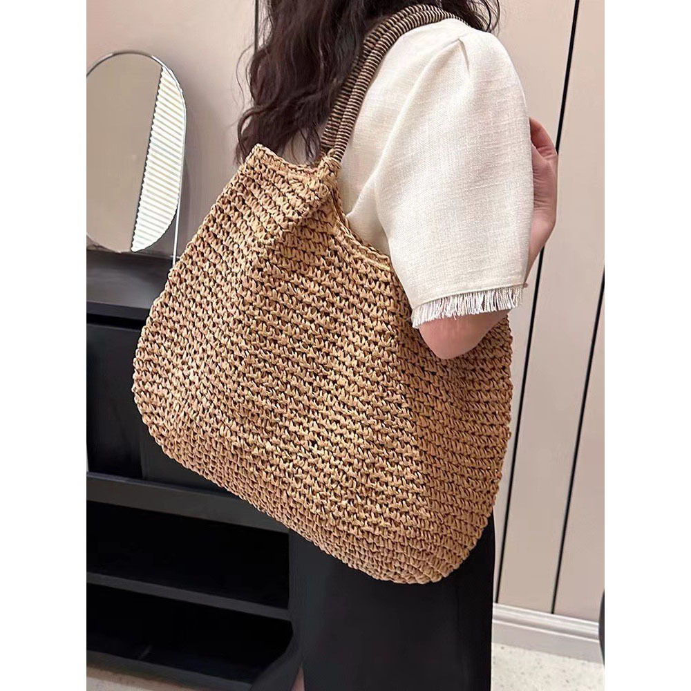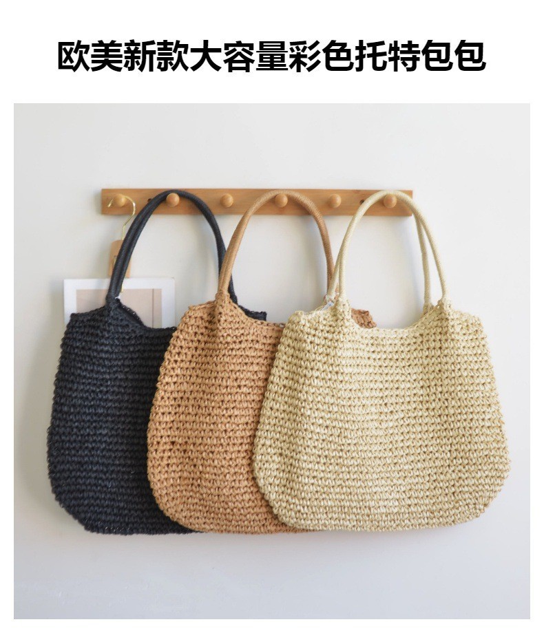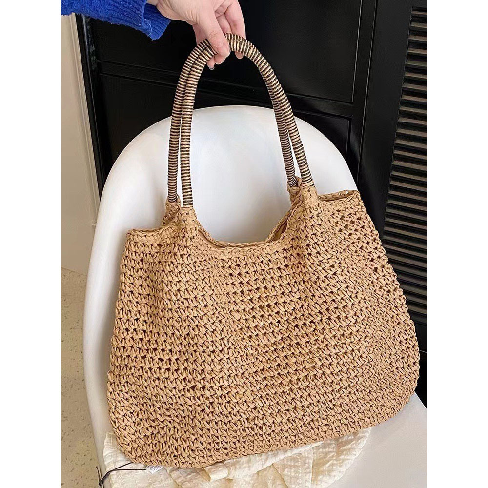 한국 스타일의 새로운 휴일 스타일 수제 짠 어깨 가방 대용량 토트 백 유행 빈티지 해변 여성 가방