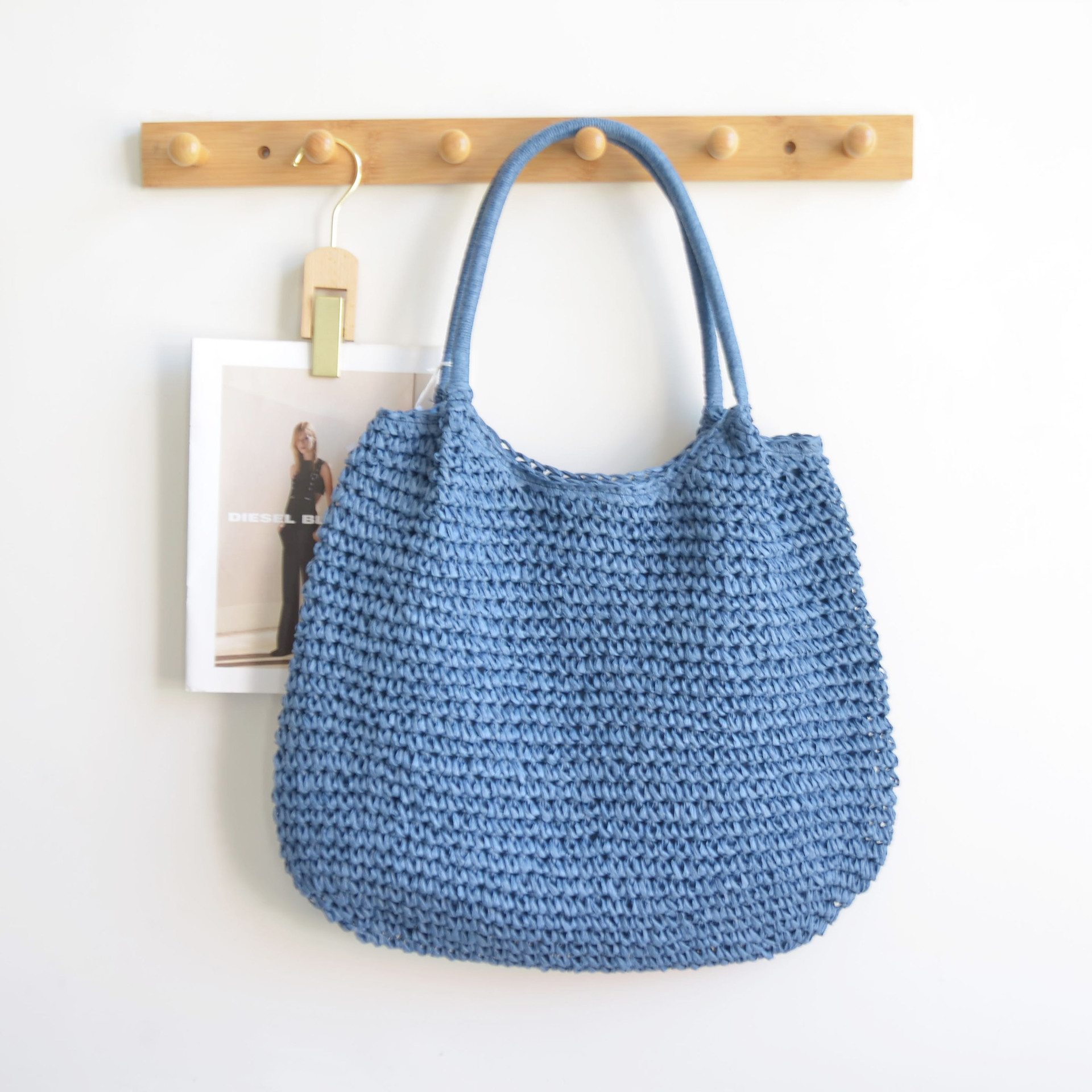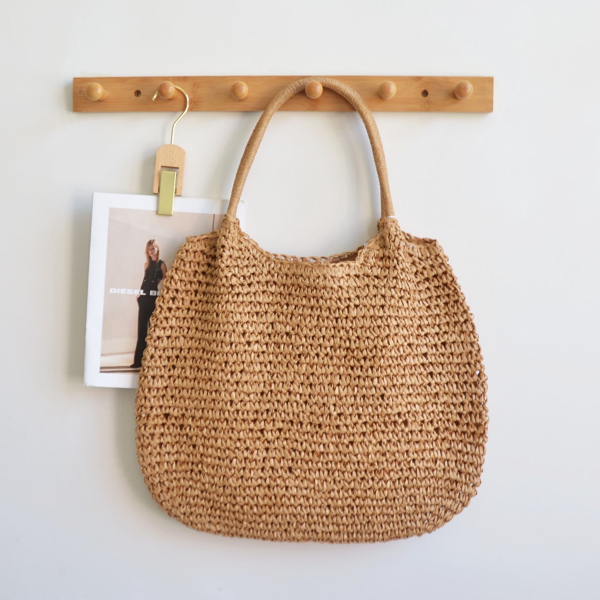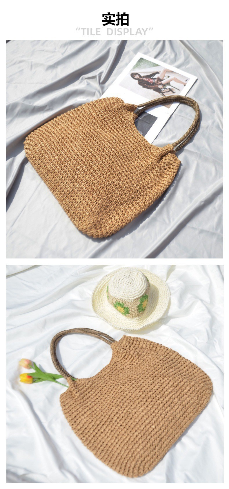 한국 스타일의 새로운 휴일 스타일 수제 짠 어깨 가방 대용량 토트 백 유행 빈티지 해변 여성 가방