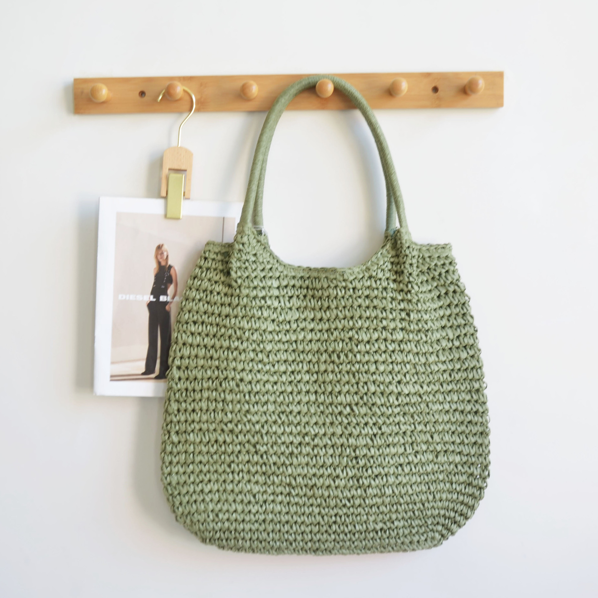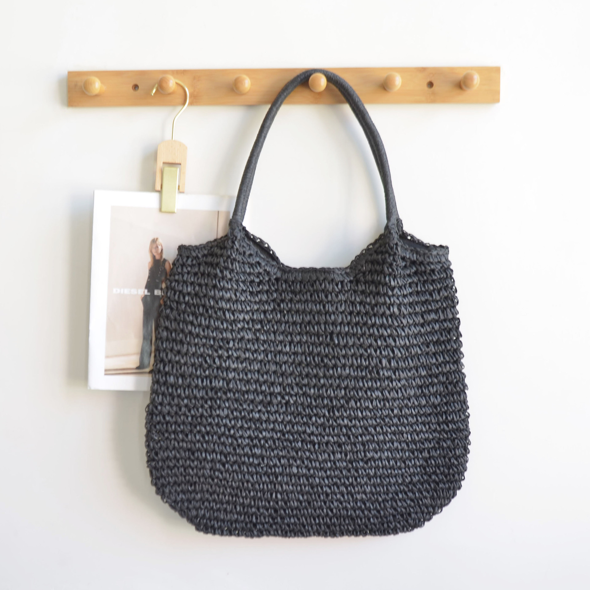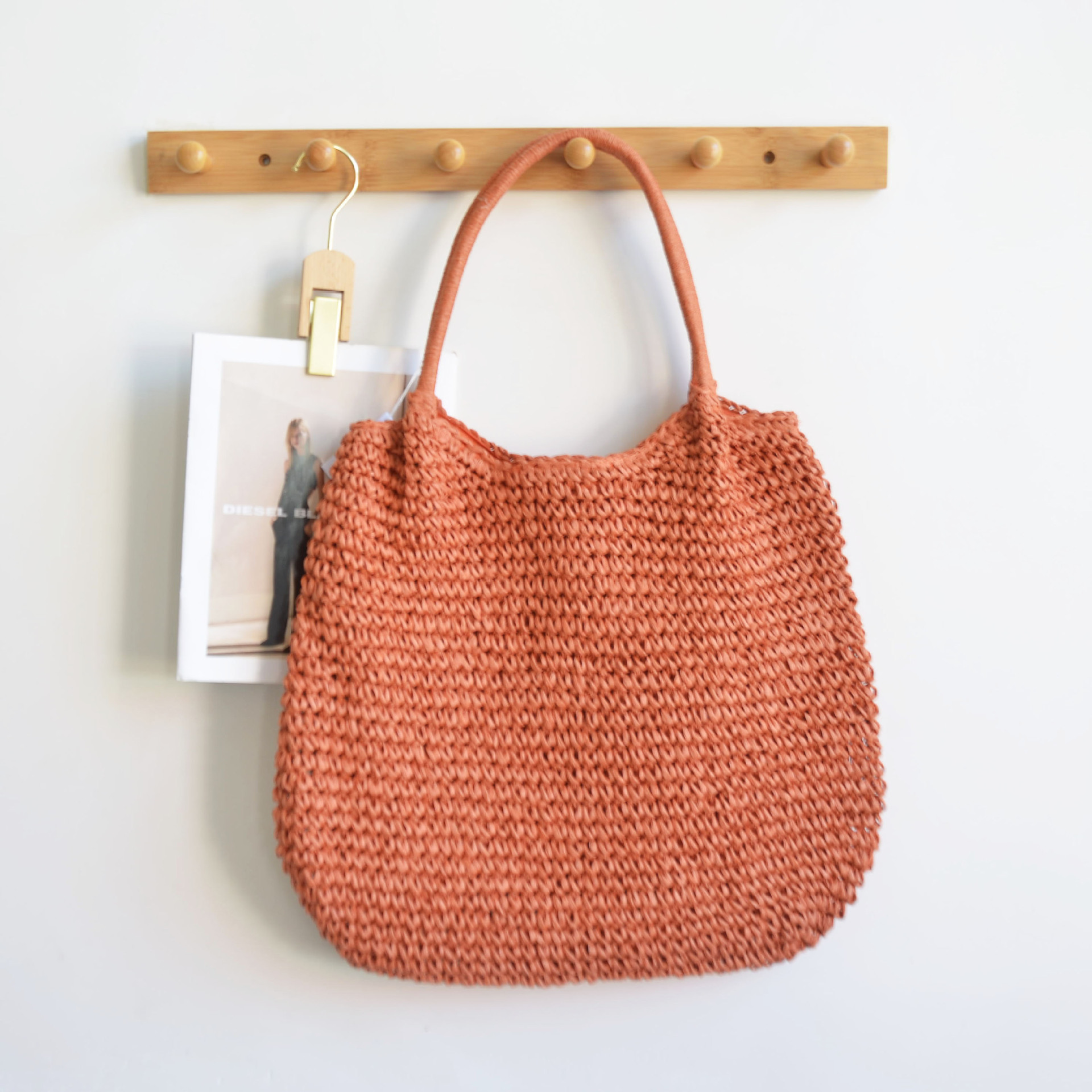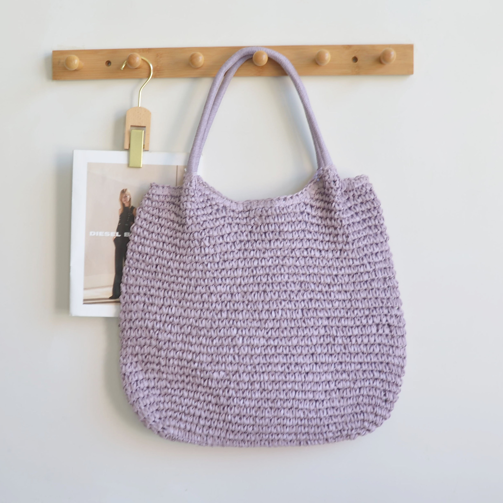 한국 스타일의 새로운 휴일 스타일 수제 짠 어깨 가방 대용량 토트 백 유행 빈티지 해변 여성 가방
