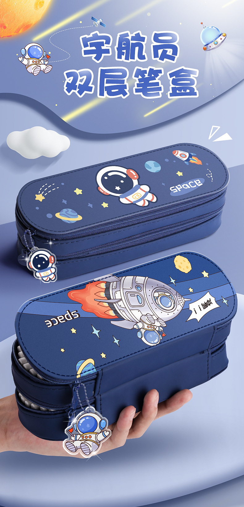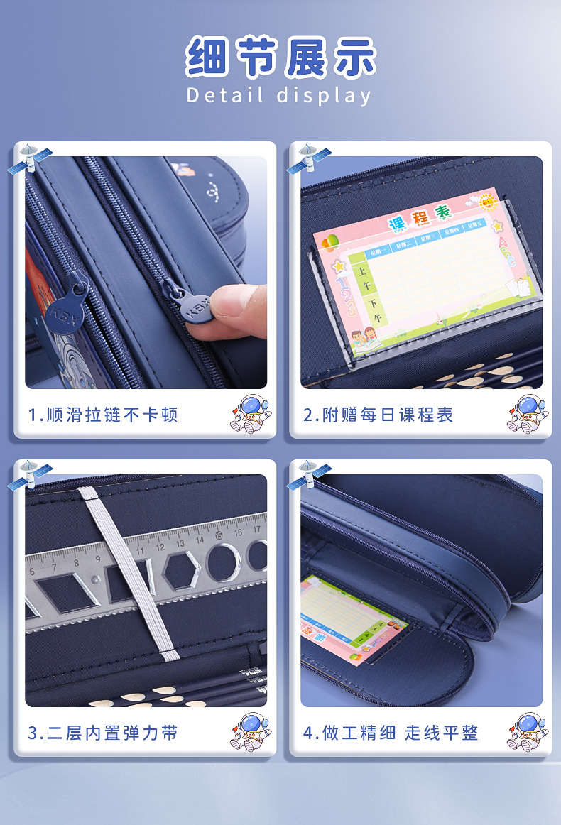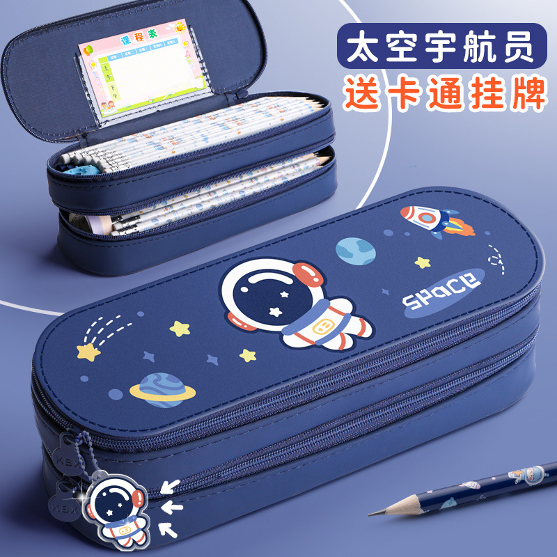 어린이 다기능 우주 비행사 더블 레이어 연필 가방 소년의 대용량 문구 가방 초등학생의 간단한 필통 필통스토어 가기