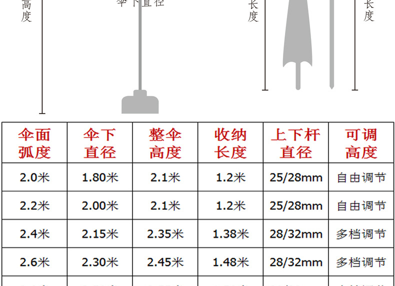 • 2.6 m 컬러/더블 레이어 천/420D 옥스포드 실버 테이프 + 폴리에스테르 실버 테이프