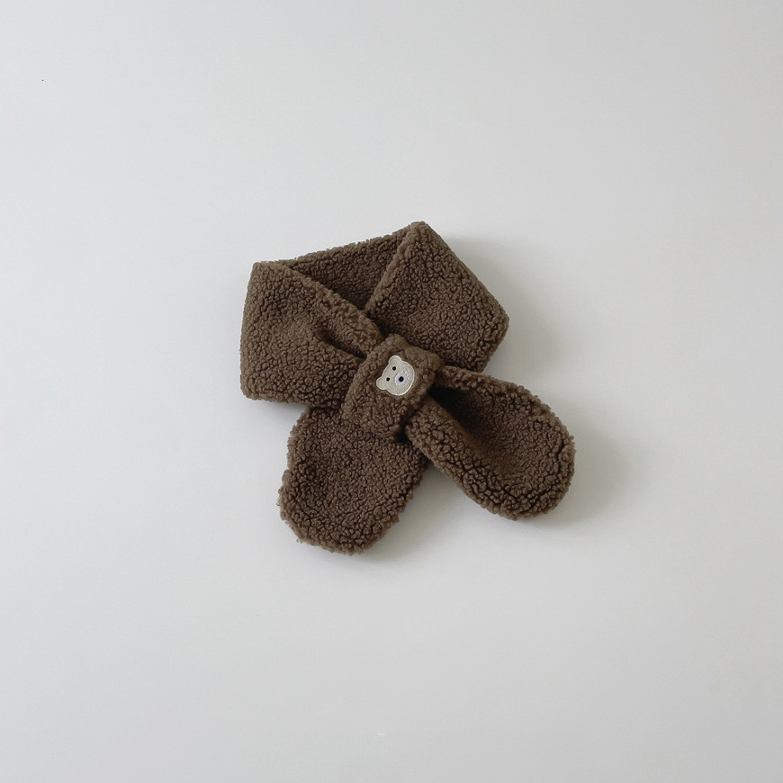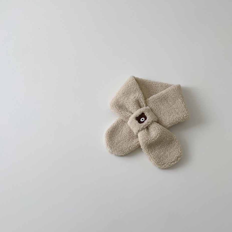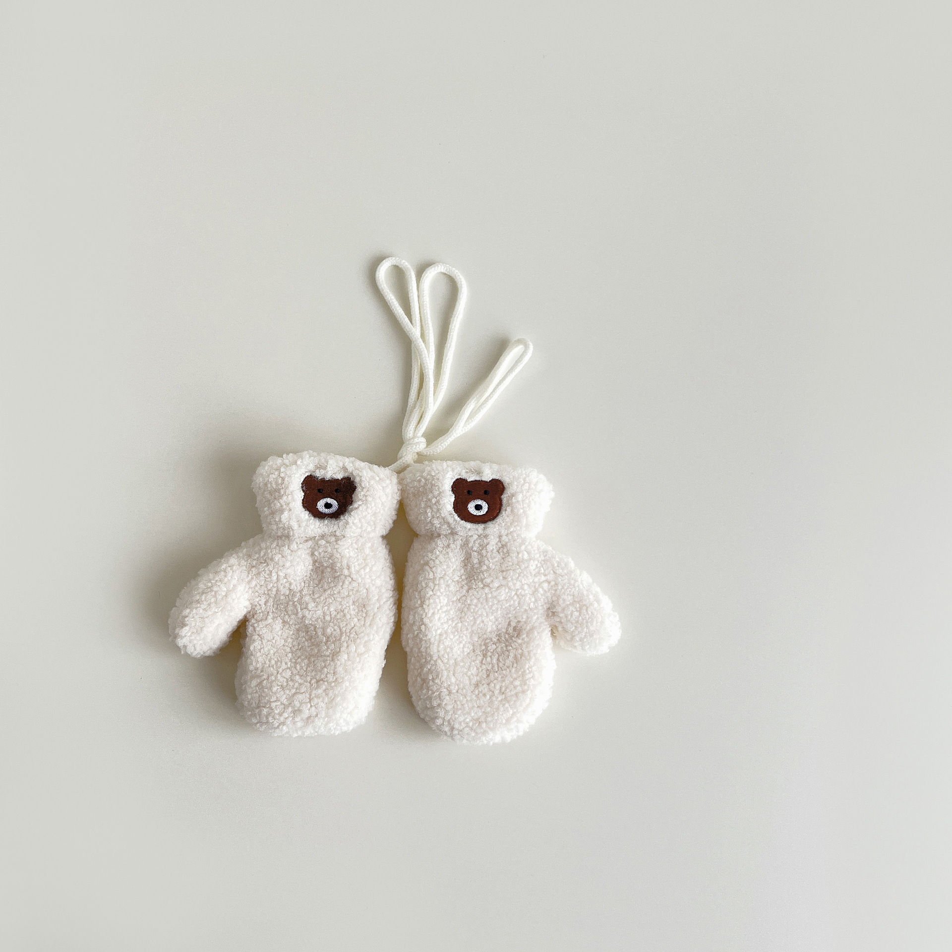 Qiunan 어린이 장갑 스카프 겨울 새로운 한국식 만화 곰 기모 귀여운 따뜻한 아기 목 장갑