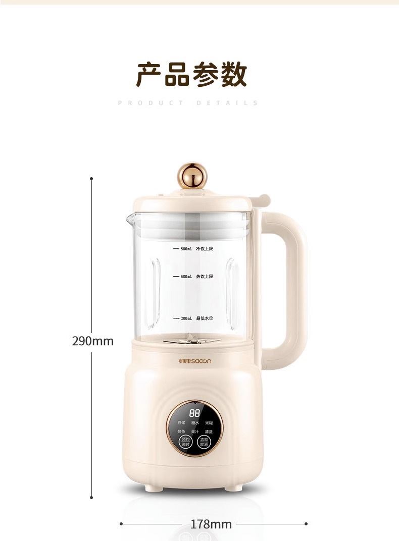 슈아이캉 두유 기계 가정용 자동 예약 다기능 소형 벽 깨기 필터 프리 및 잔류 물이없는 이유식 밥 페이스트