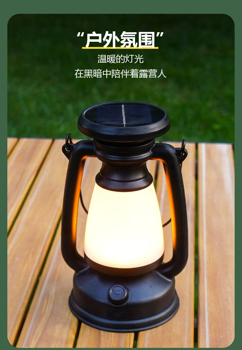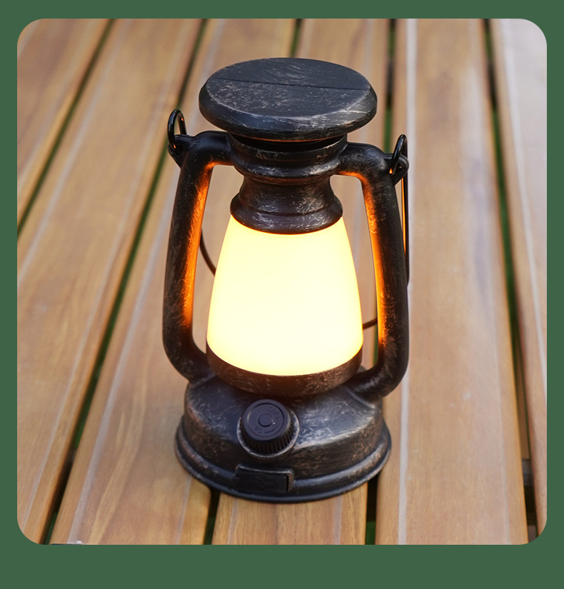 새로운 야외 레트로 태양 휴대용 캠핑 램프 등유 램프 충전 테이블 램프 장식 분위기 램프 비상 램프