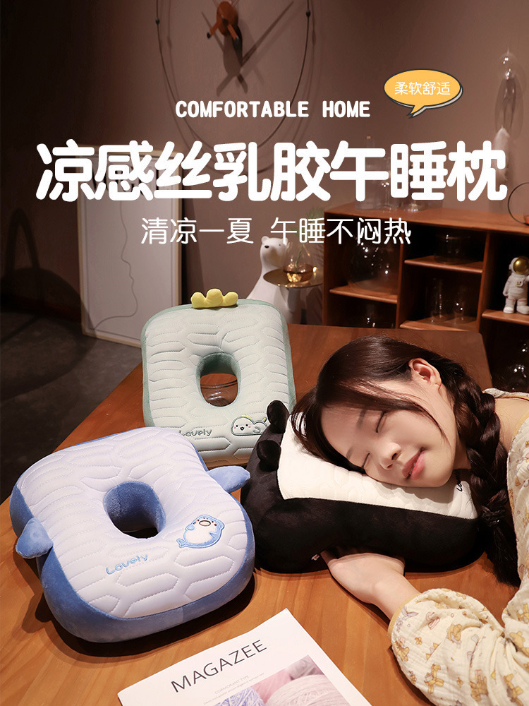 여름 학생 작은 베개 사무실 낮잠 유물 점심 시간 수면 테이블 베개 라텍스 아이스 실크 낮잠 베개스토어 가기