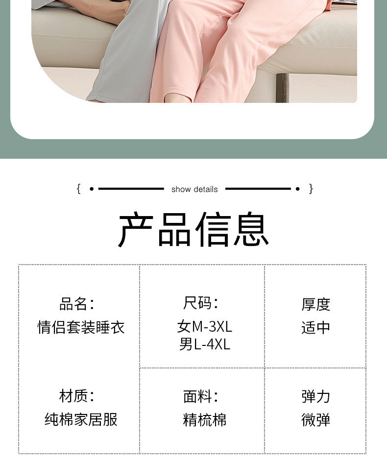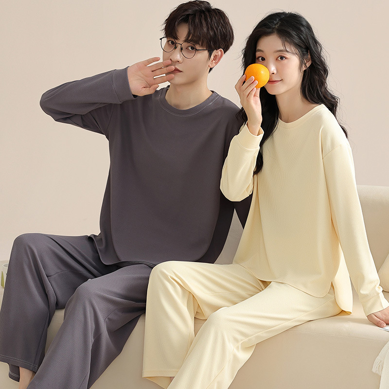 커플 잠옷 여자의 가을 와플 시원한 면 긴 소매 얇은 2023 새로운 플러스 사이즈 간단한 남자의 가정 의류스토어 가기