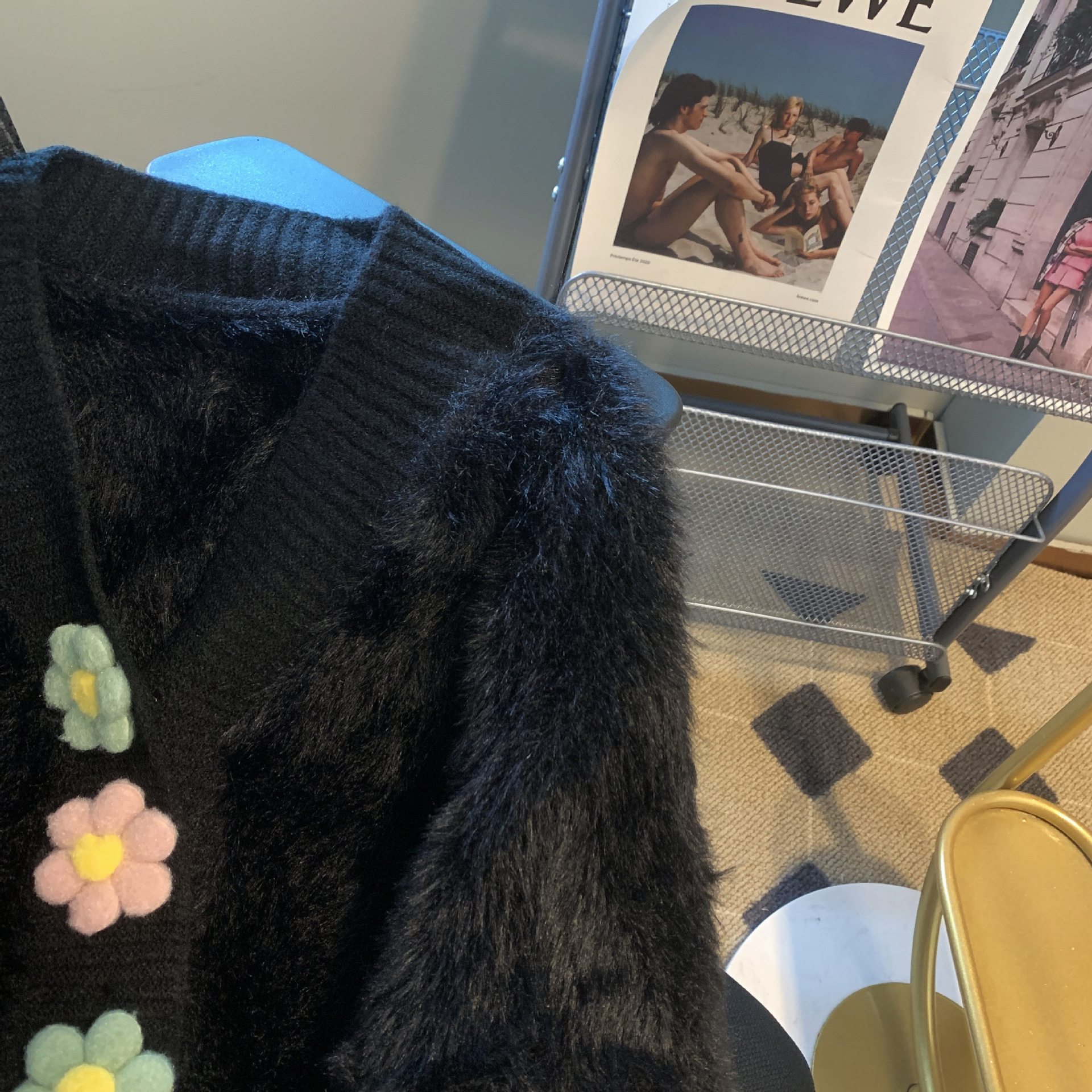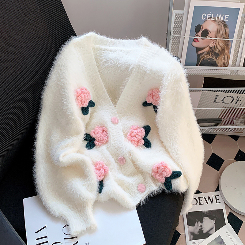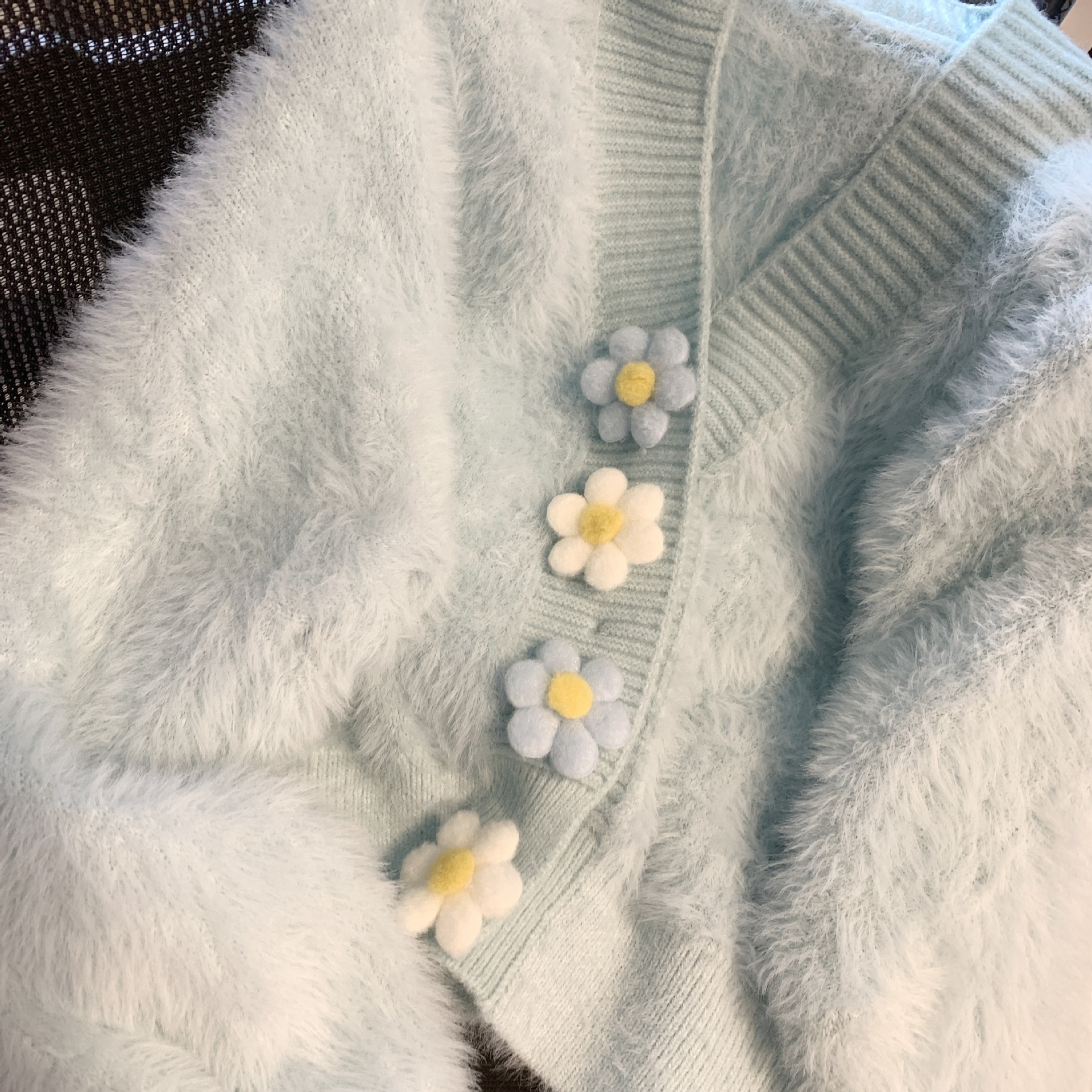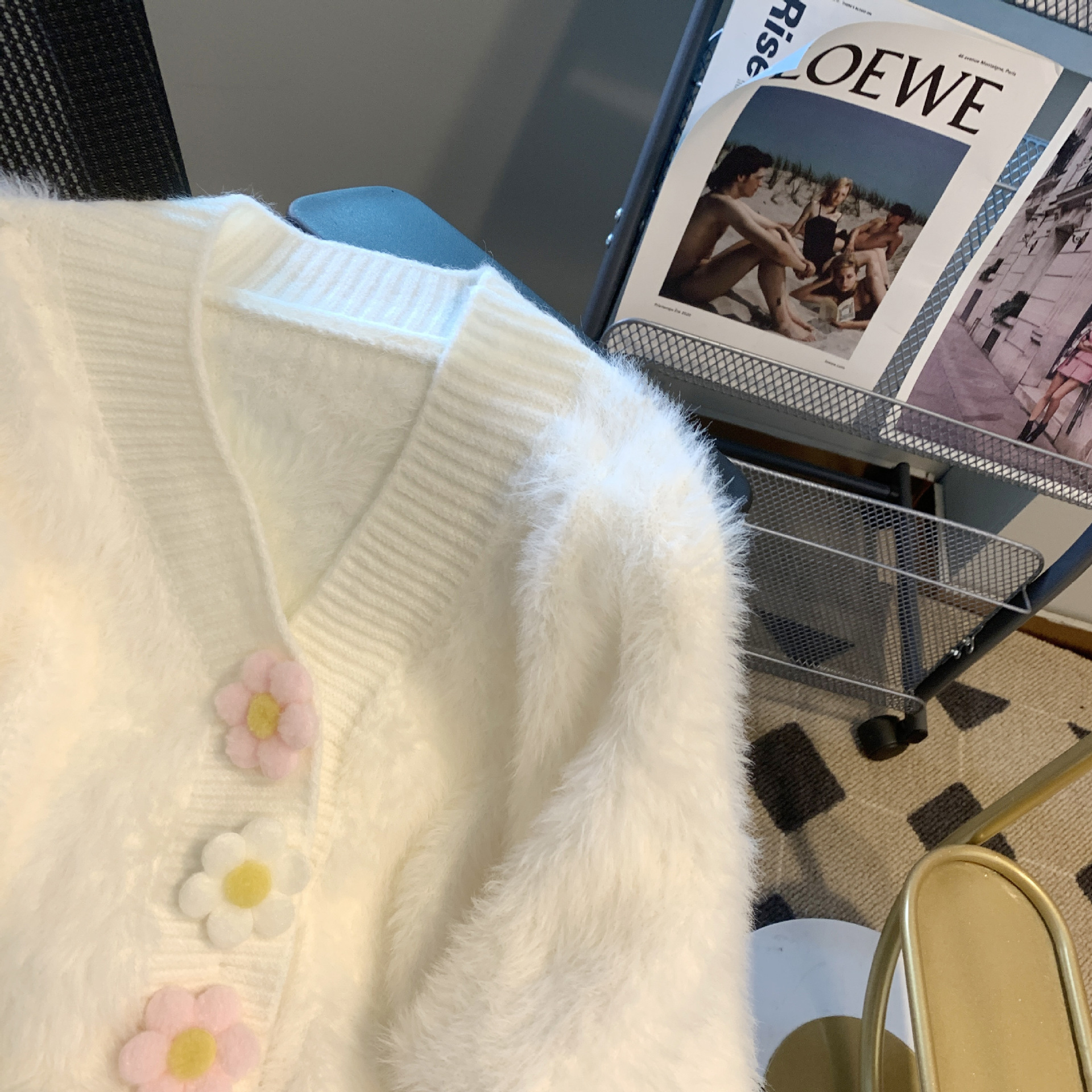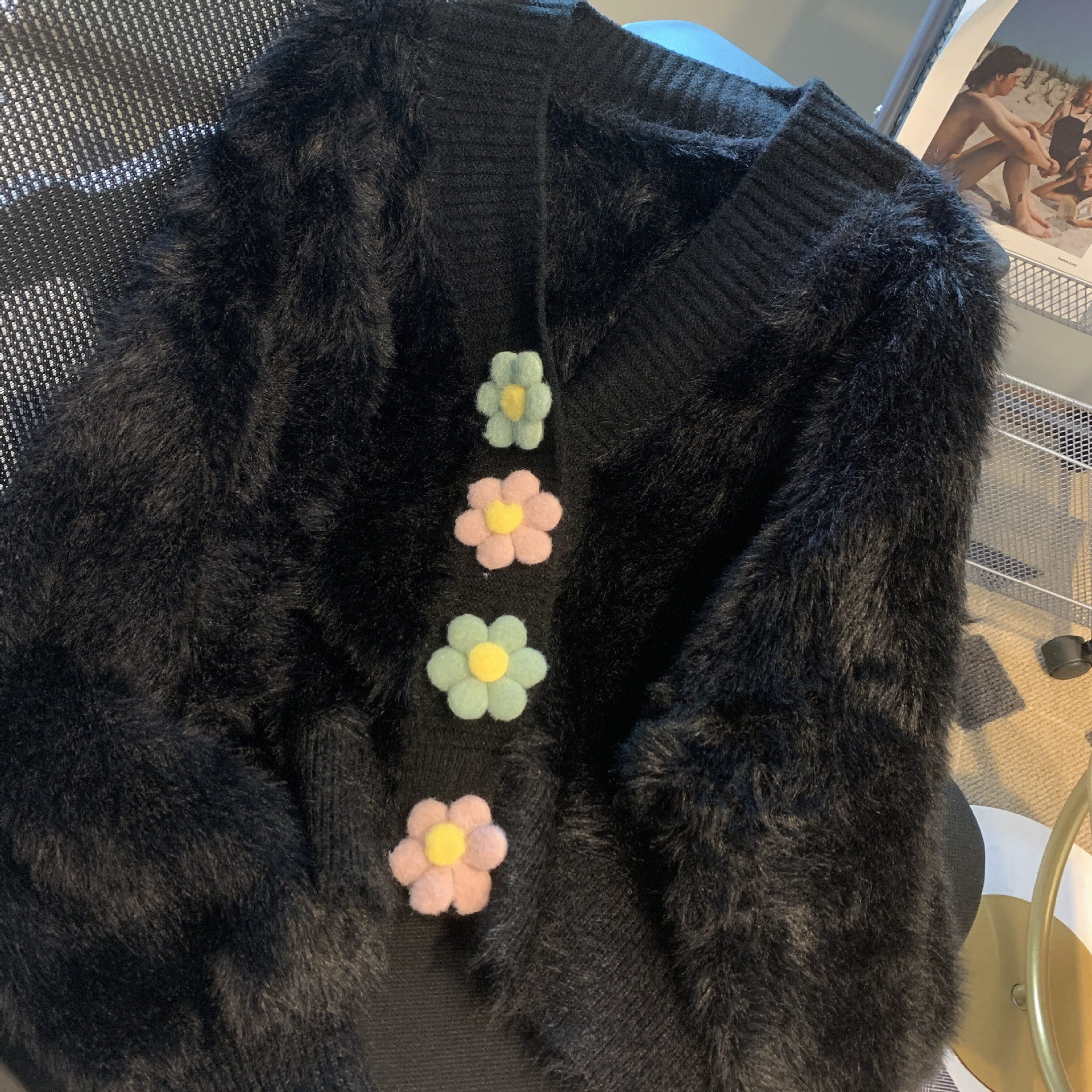 단색 모조 밍크 스웨터 재킷 2025 가을 스타일 배색 루즈핏 브이넥 독특한 디자인 니트 가디건스토어 가기