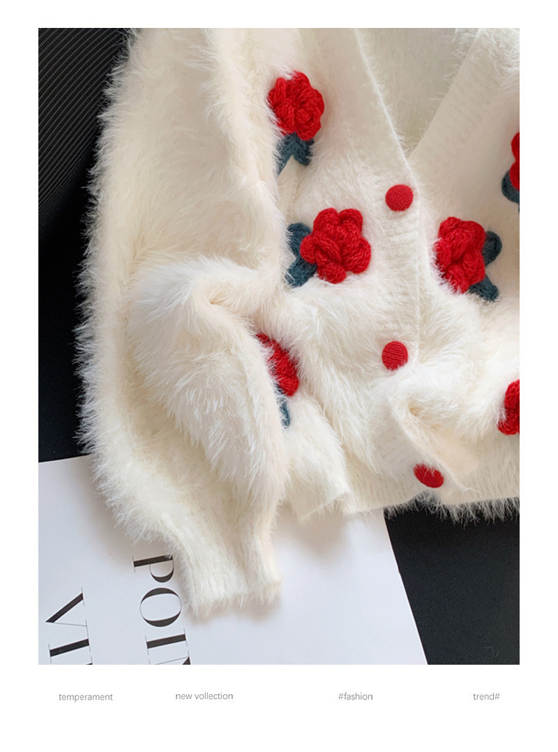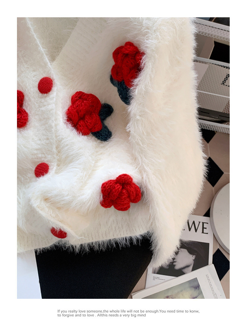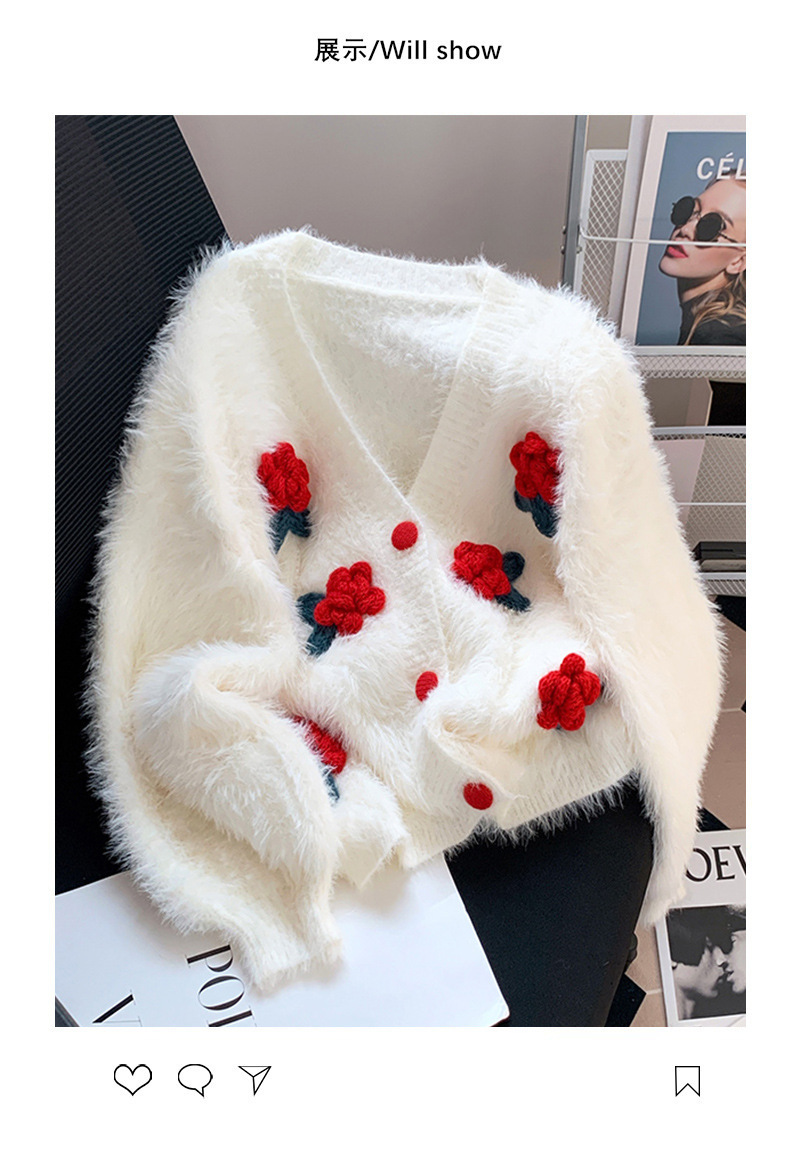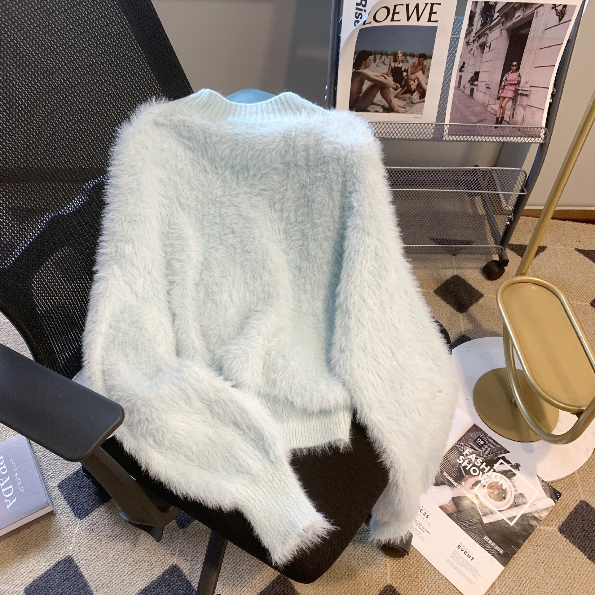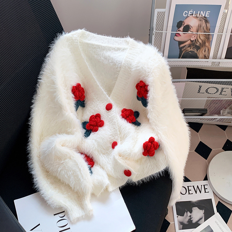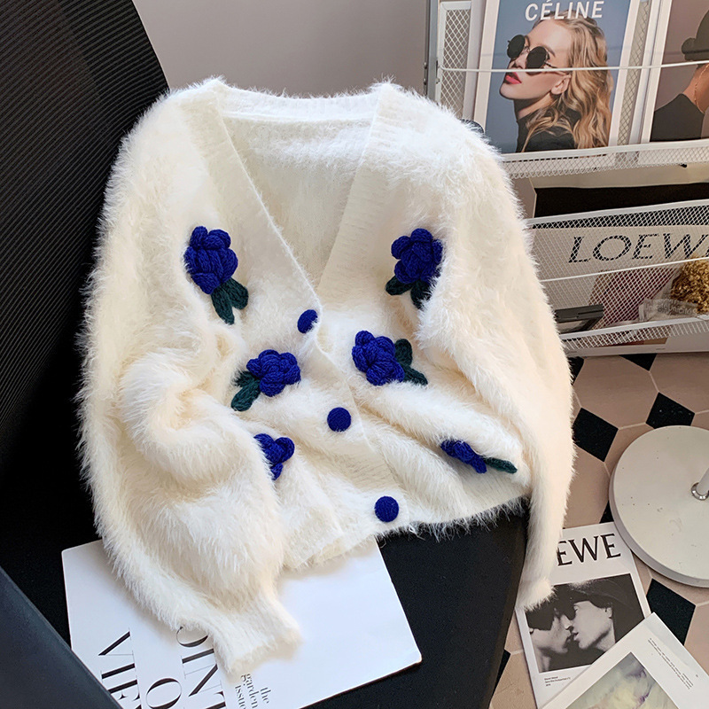 단색 모조 밍크 스웨터 재킷 2025 가을 스타일 배색 루즈핏 브이넥 독특한 디자인 니트 가디건스토어 가기