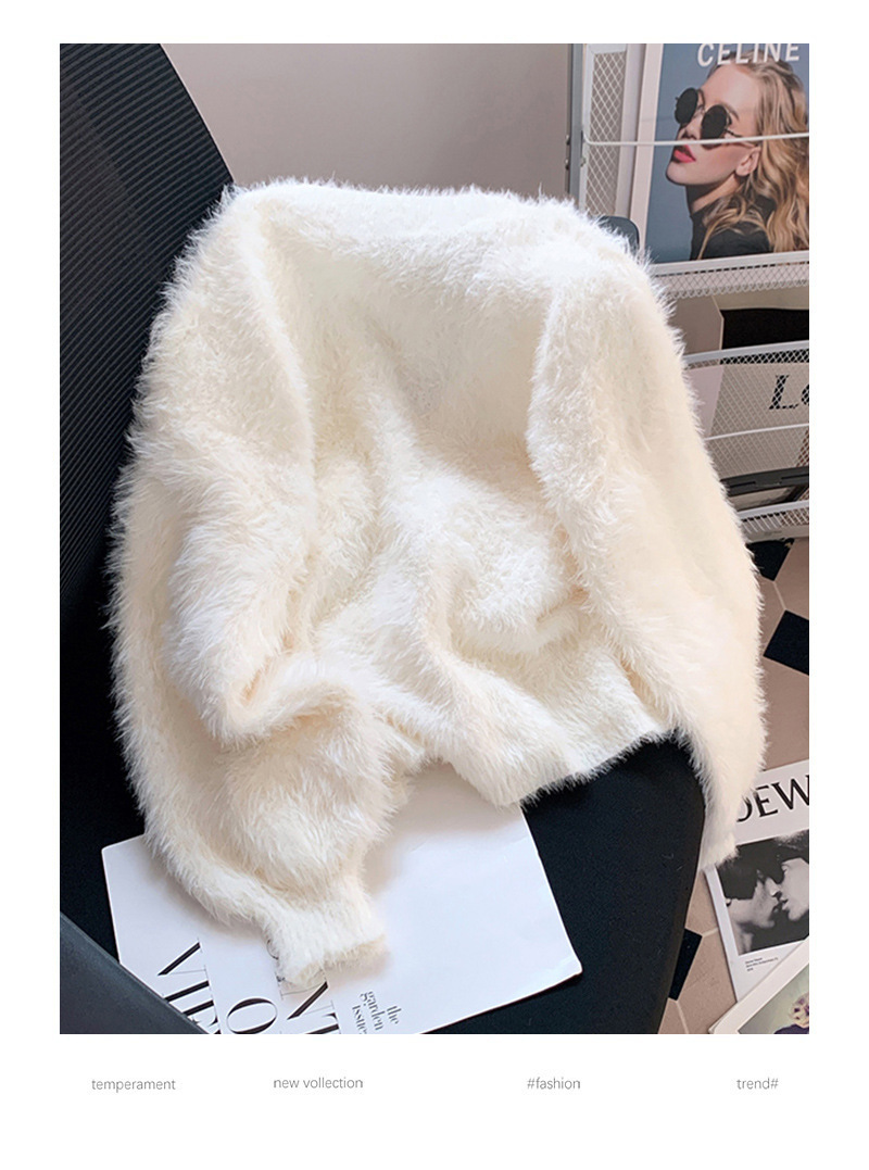 단색 모조 밍크 스웨터 재킷 2025 가을 스타일 배색 루즈핏 브이넥 독특한 디자인 니트 가디건