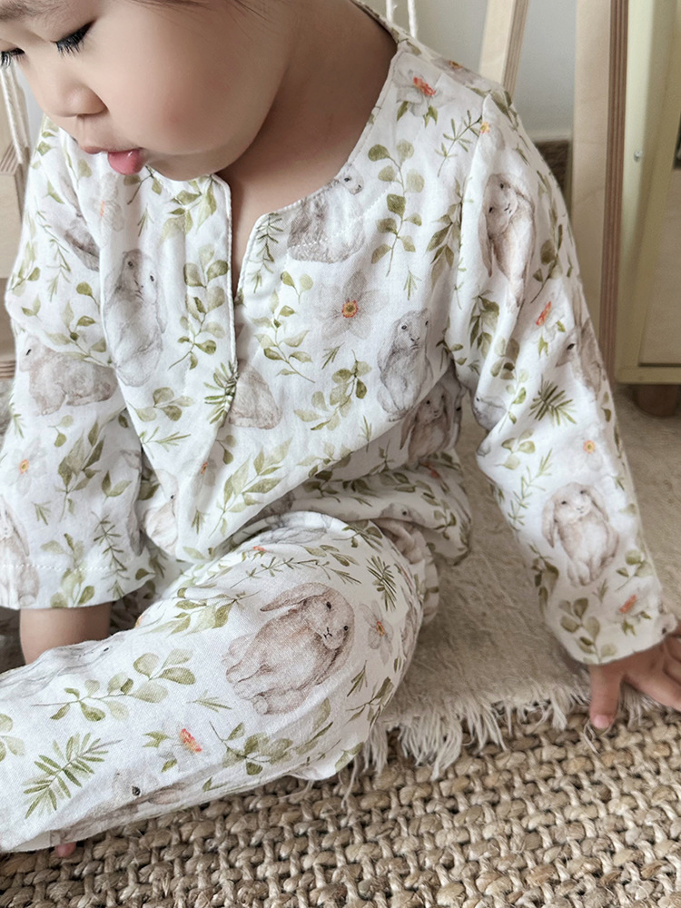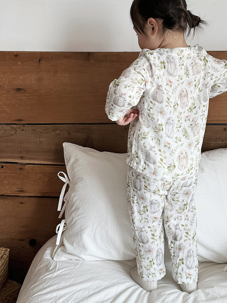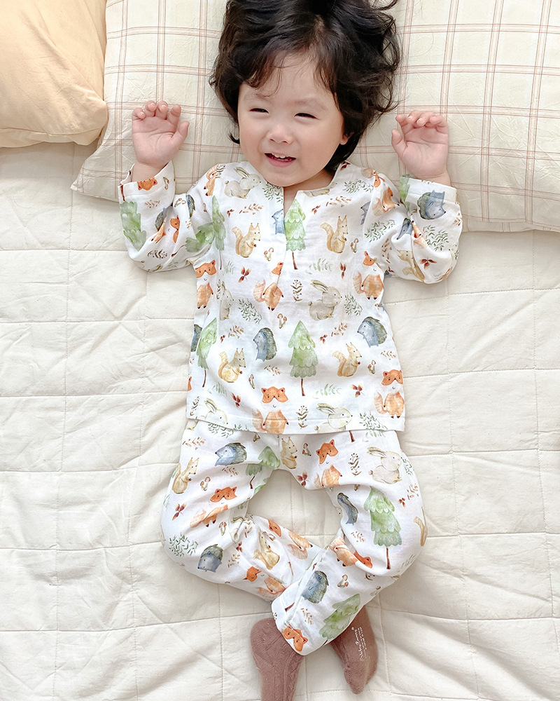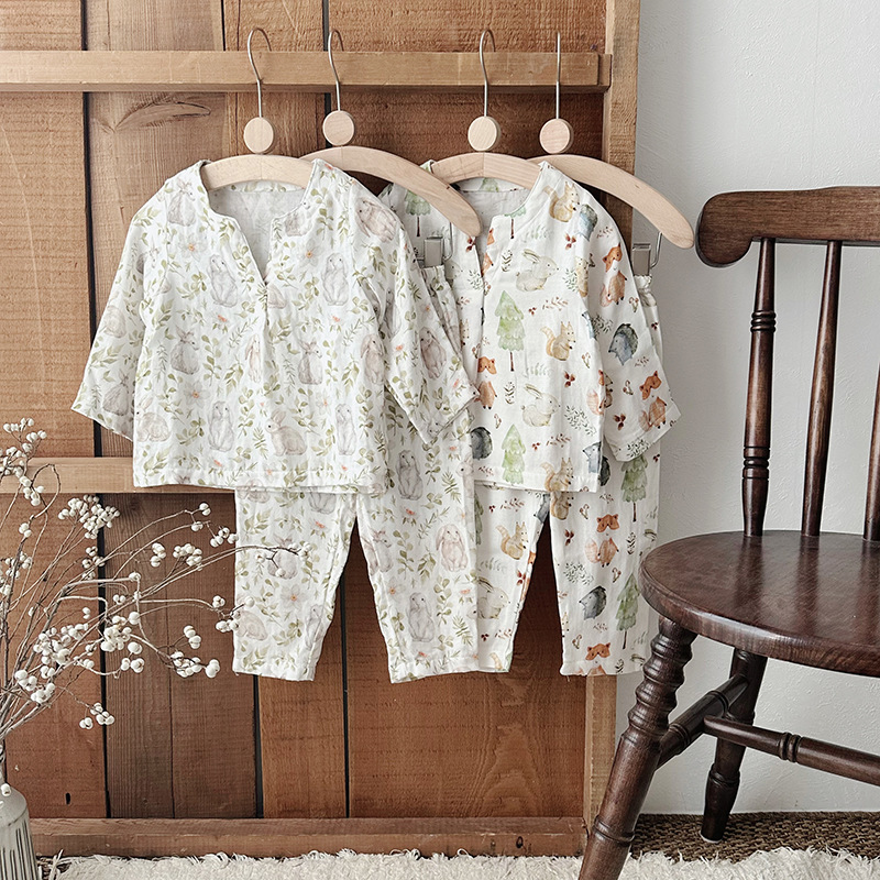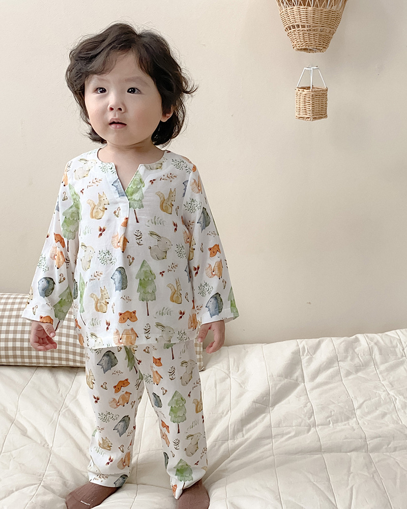 아동복, 대나무 면 거즈 아동 잠옷 세트, 유아 에어컨 잠옷, 여아 긴팔 바지 세트스토어 가기