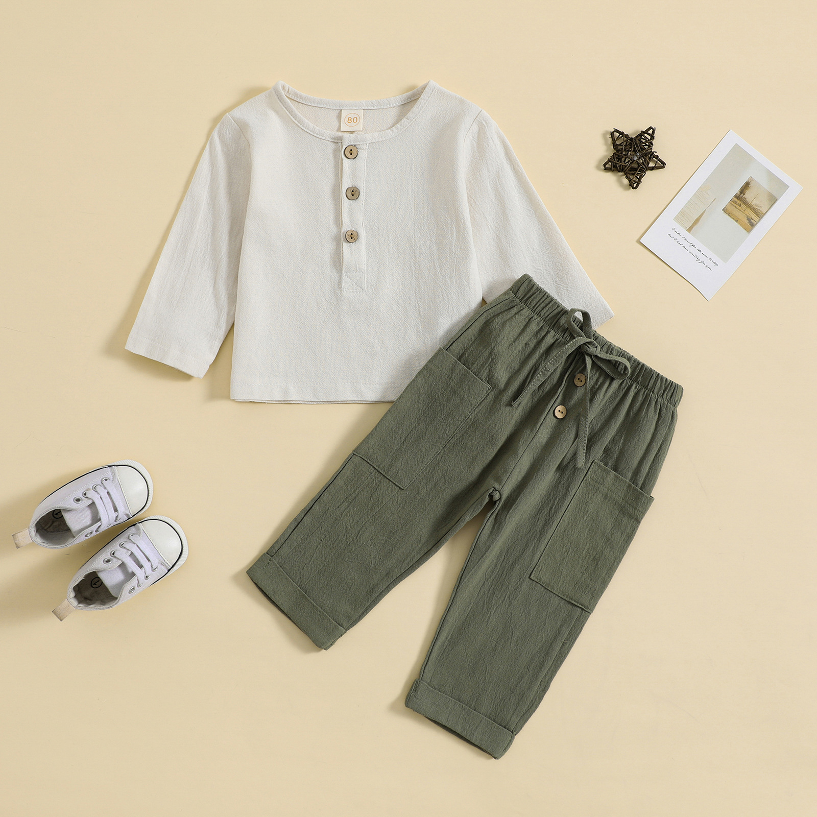 국경 간 대외 무역 2023 이른 가을 새로운 소년 가정 의류 가벼운 캐주얼 3 색 바지 세트 재고 도매