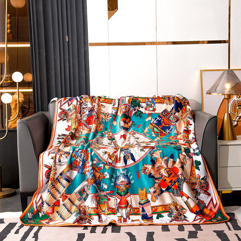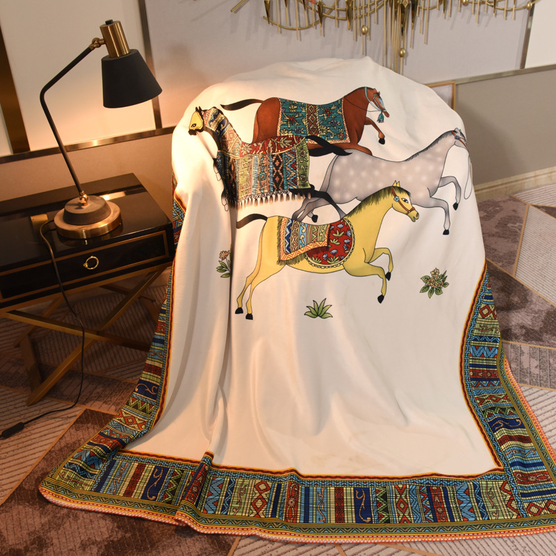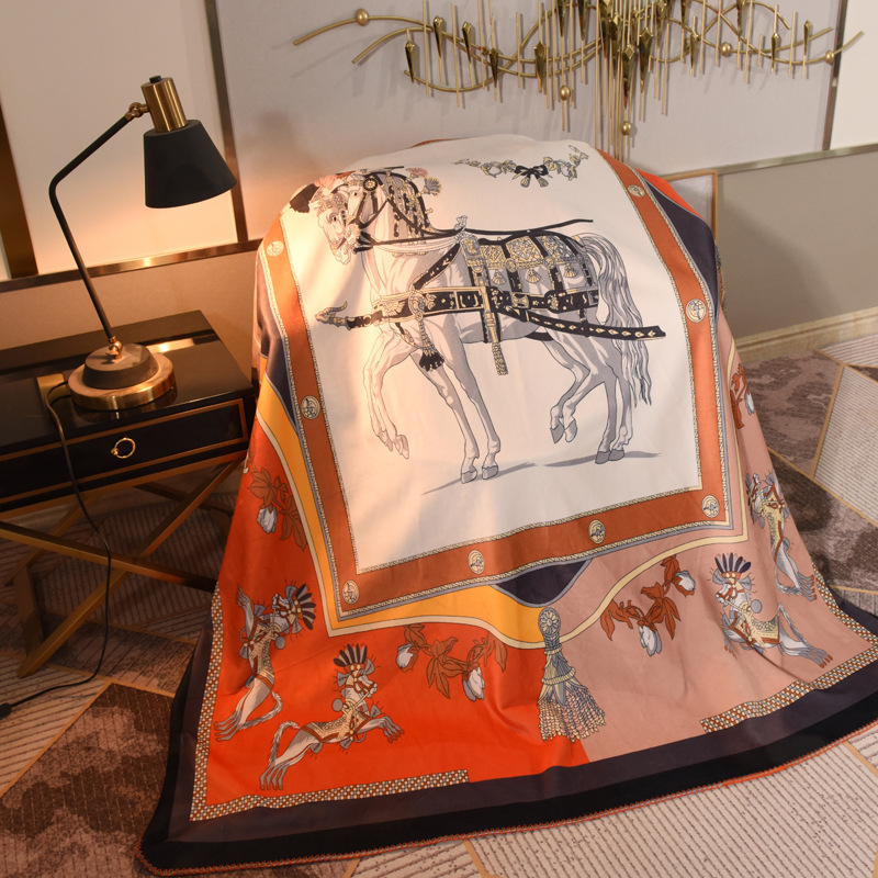 고급 진후 양털 담요 복합 담요 럭셔리 레트로 양털 담요 사랑 말 스타일 가벼운 럭셔리 레트로 꽃 두꺼운 담요