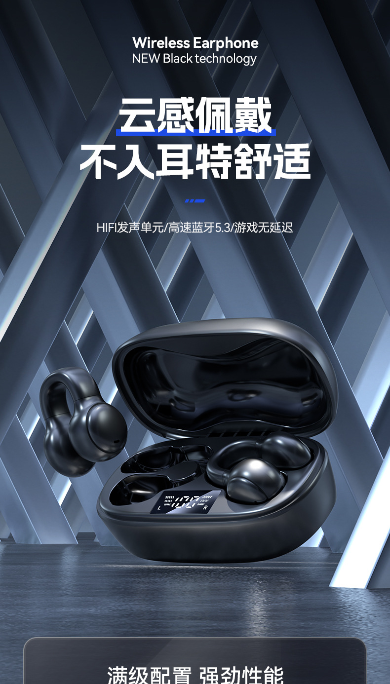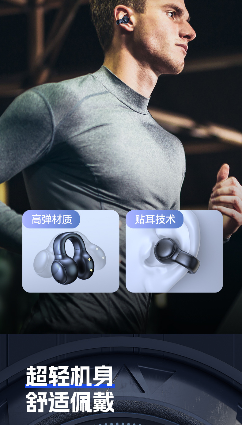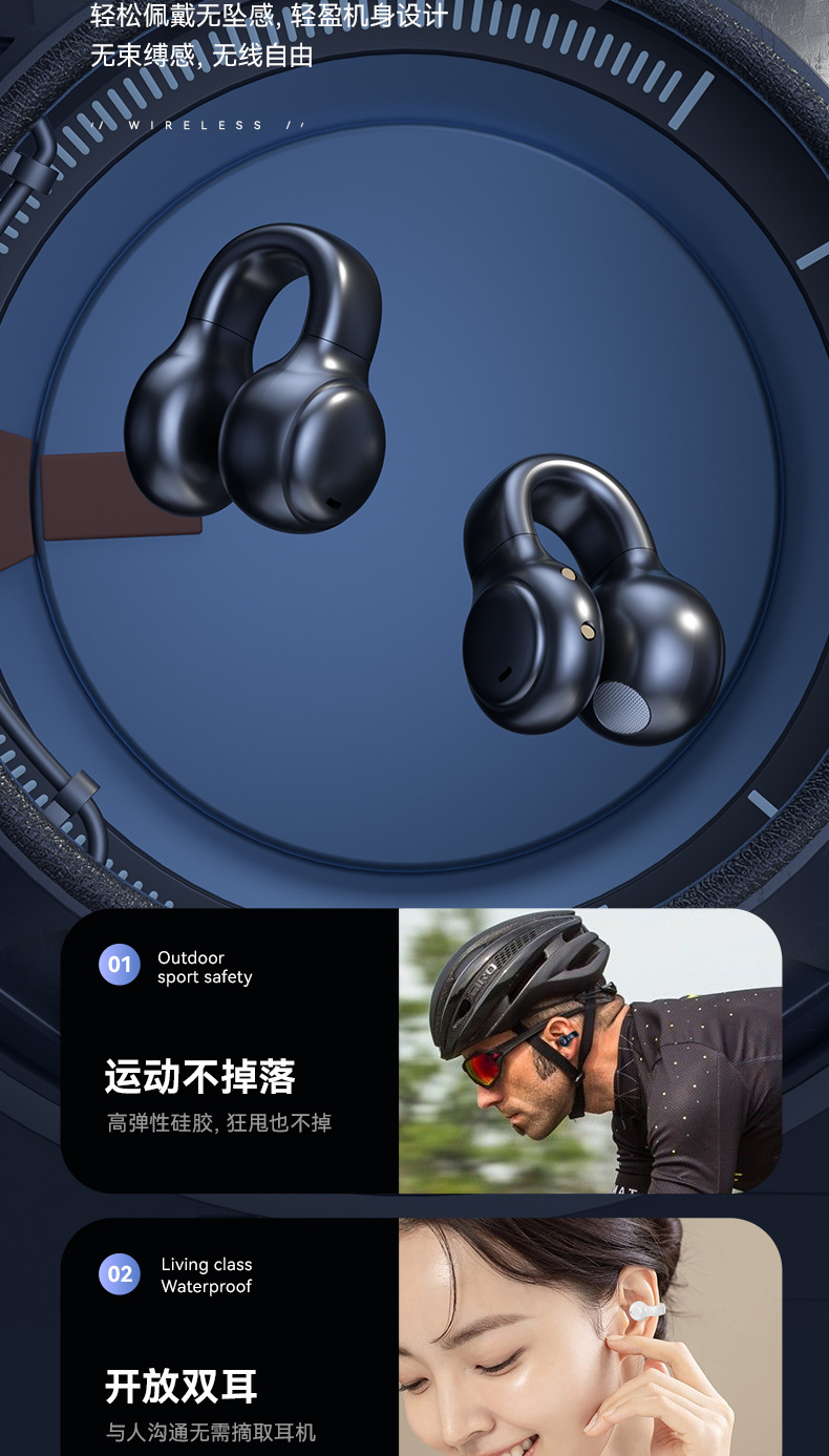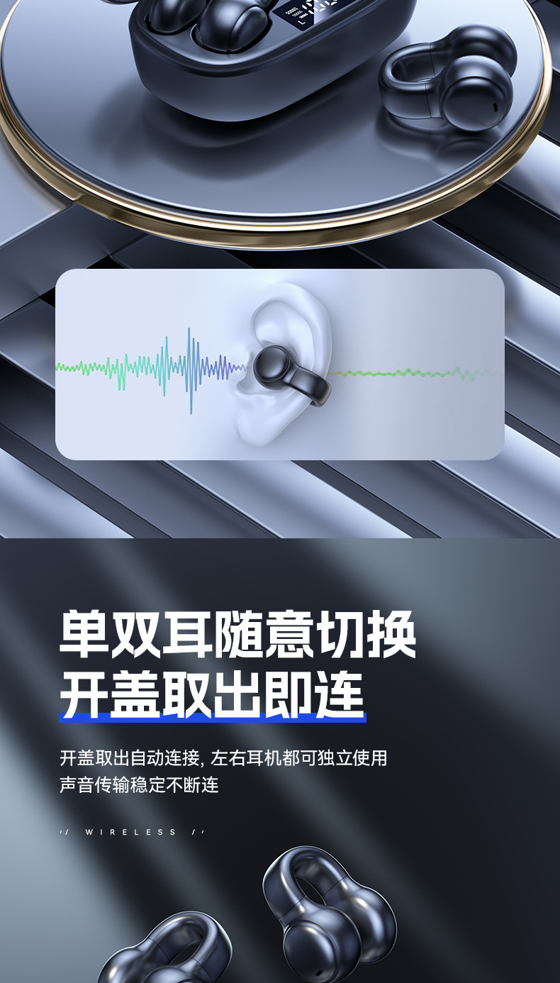 국경 간 인기 이어 클립 블루투스 헤드셋, 이어폰 형 스포츠 미니 무선 헤드셋, 개인 모델 Huaqiangbei 재고 있음스토어 가기