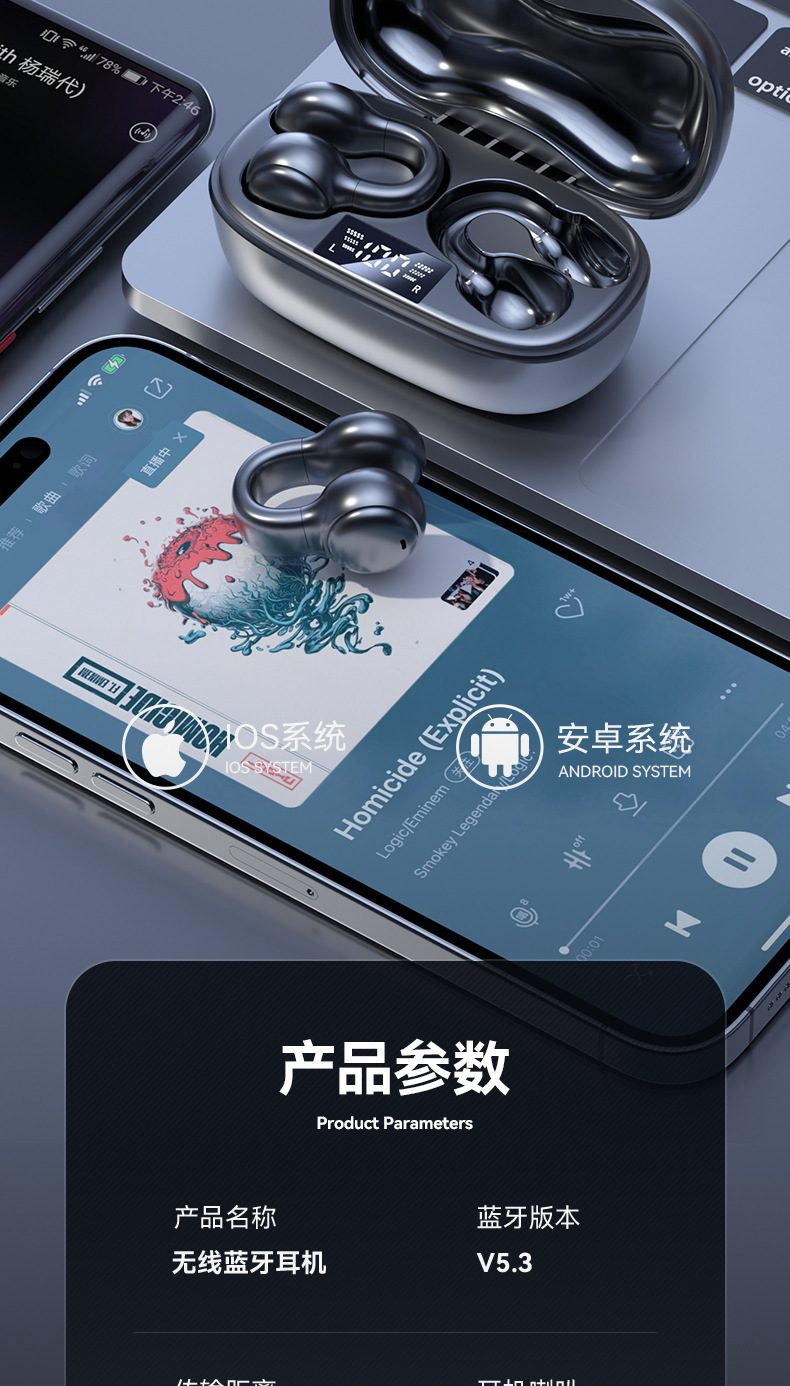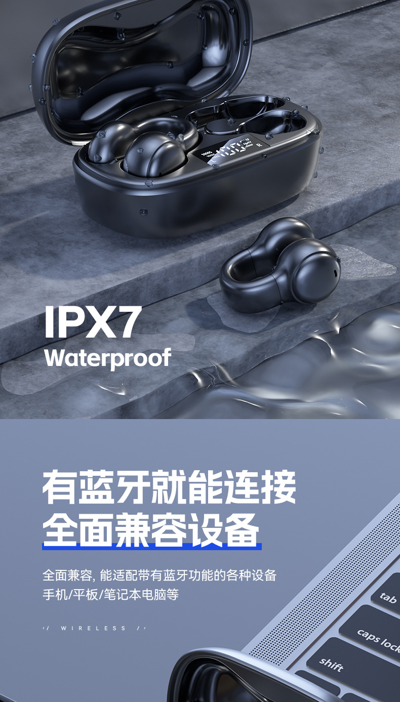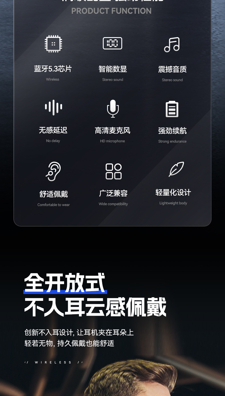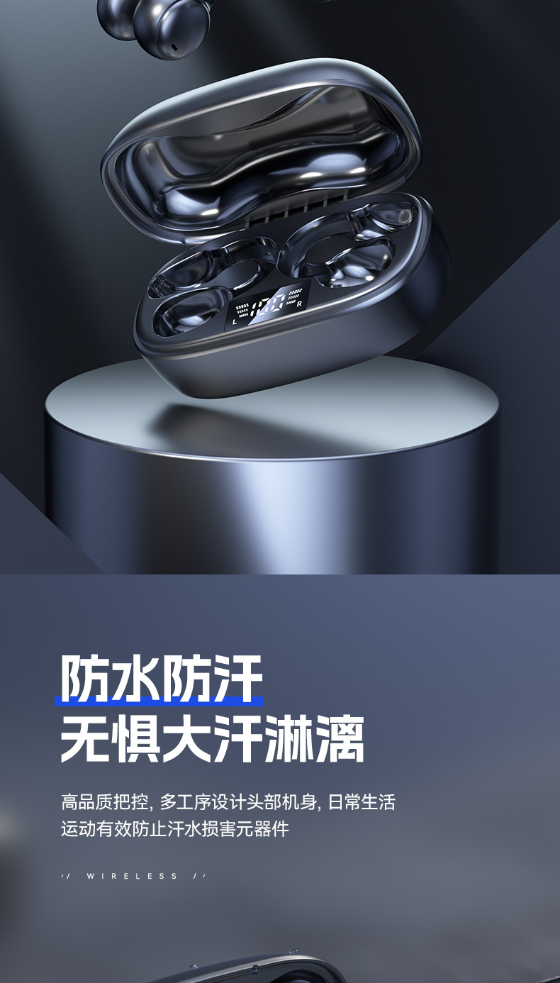 국경 간 인기 이어 클립 블루투스 헤드셋, 이어폰 형 스포츠 미니 무선 헤드셋, 개인 모델 Huaqiangbei 재고 있음스토어 가기