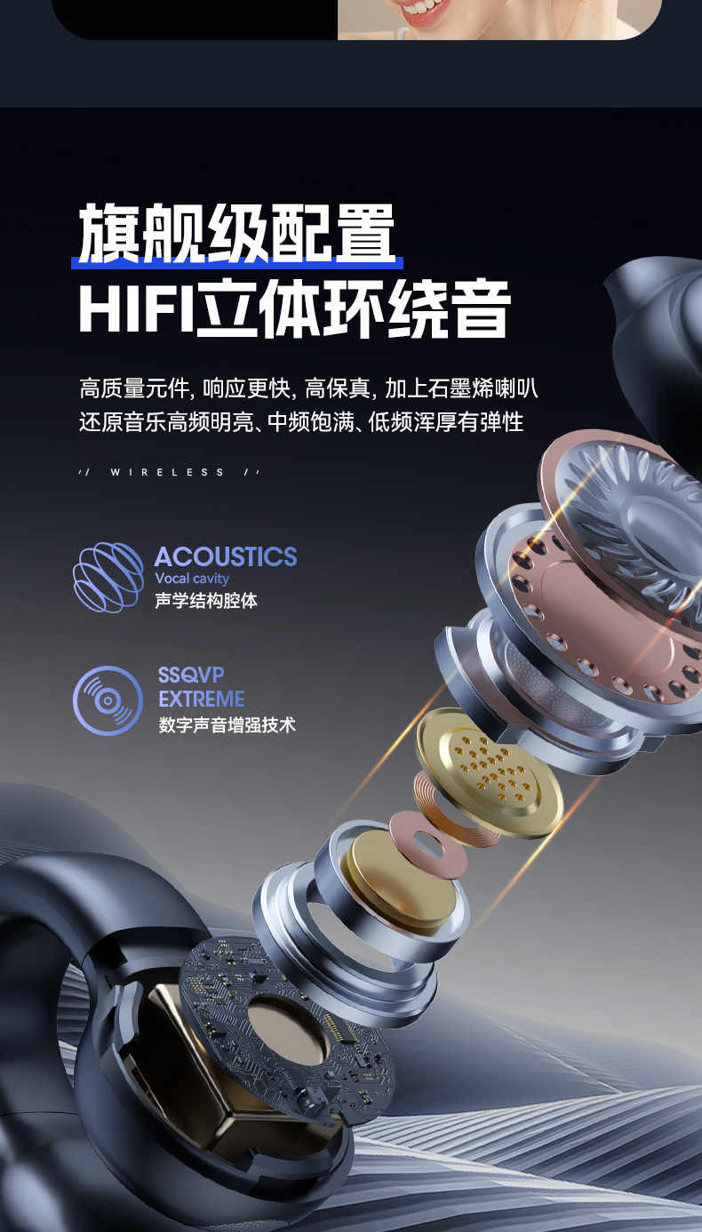 국경 간 인기 이어 클립 블루투스 헤드셋, 이어폰 형 스포츠 미니 무선 헤드셋, 개인 모델 Huaqiangbei 재고 있음
