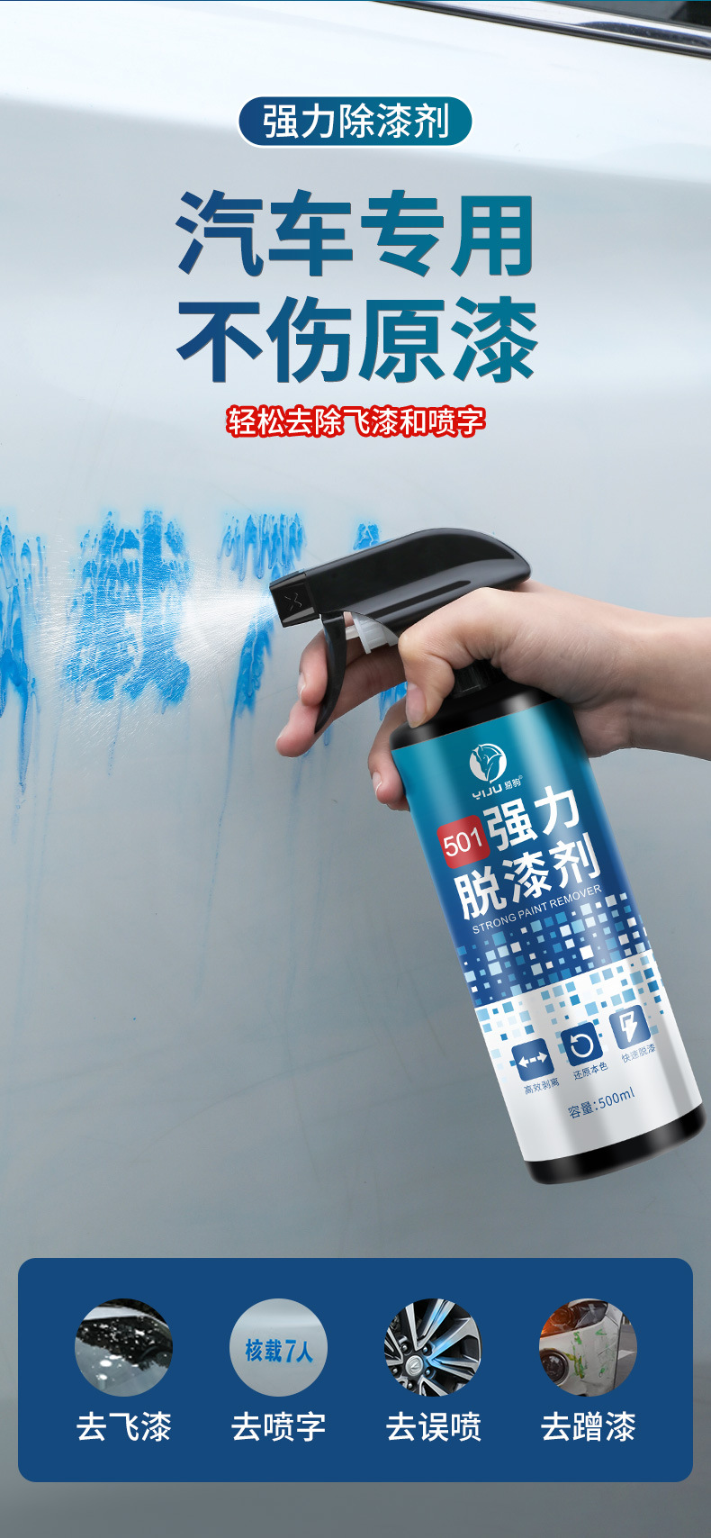 本品为强力脱漆剂,使用需要先小面积测试,10分钟无问题后再施工,避免影响原车漆,未测试大面积使用影响原车漆无法售后。