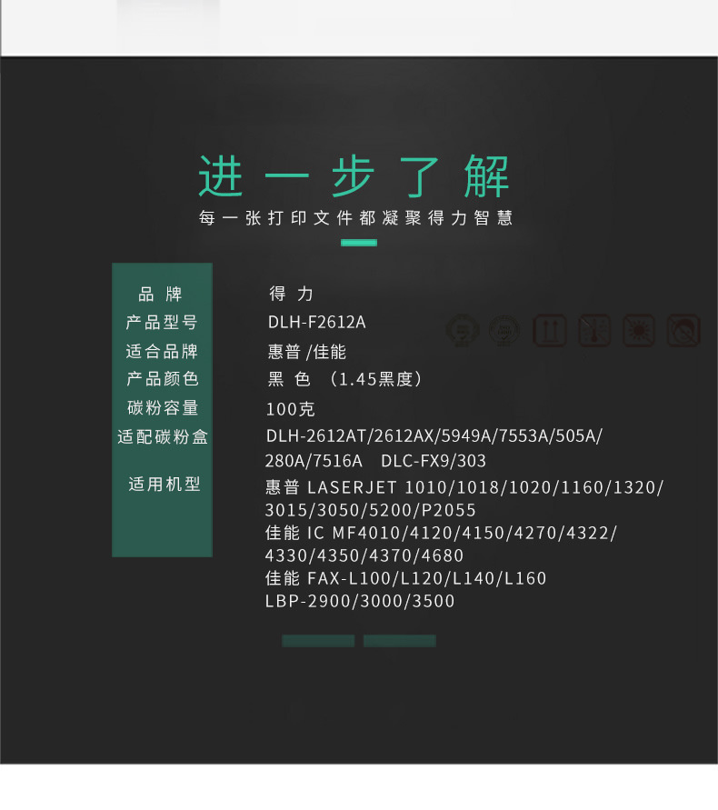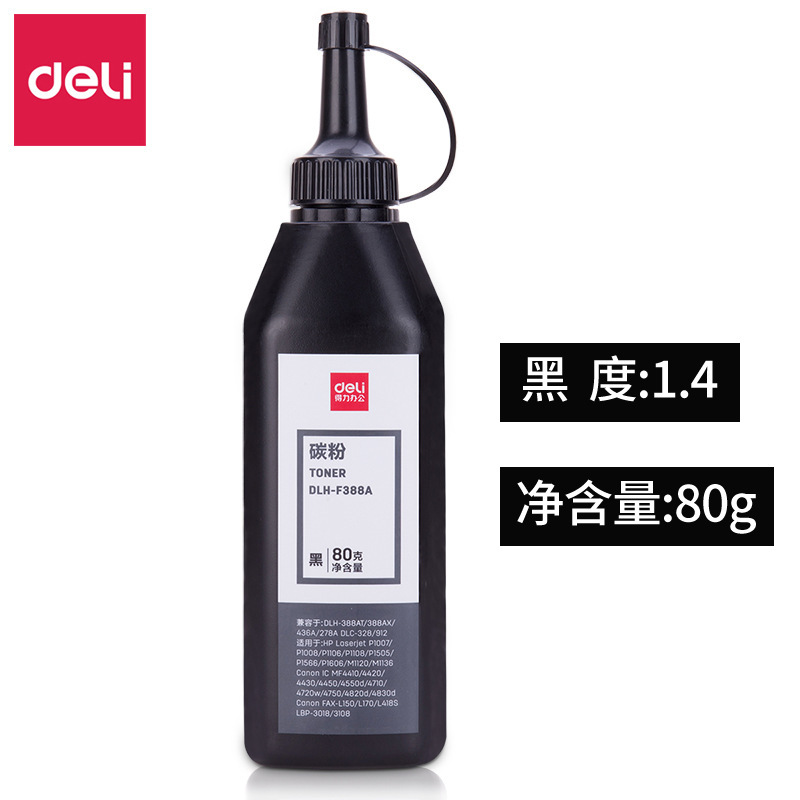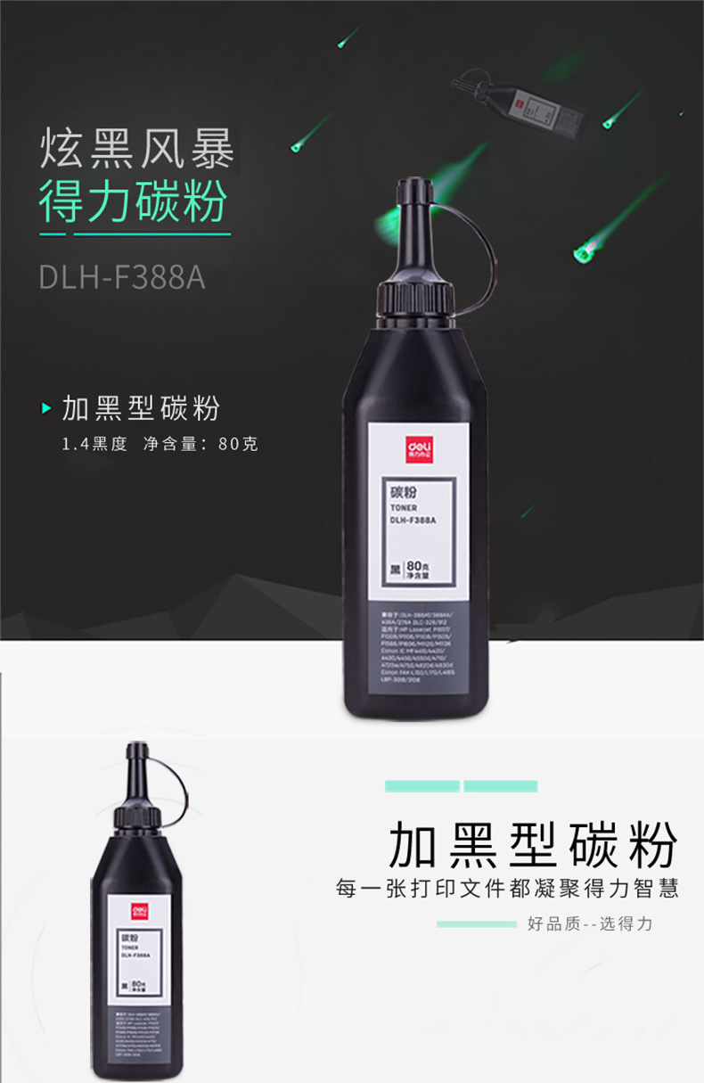 DLH-F2612A比DLH-F388A的黑度更黑一些,净含量更高一些,均可搭配得力硒鼓使用。