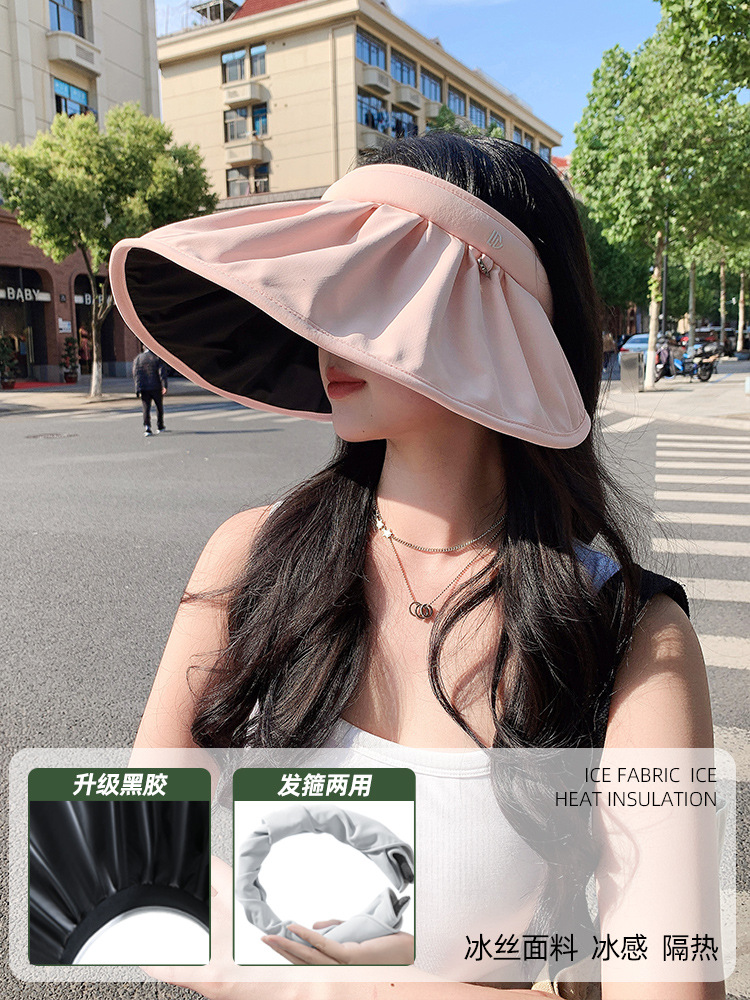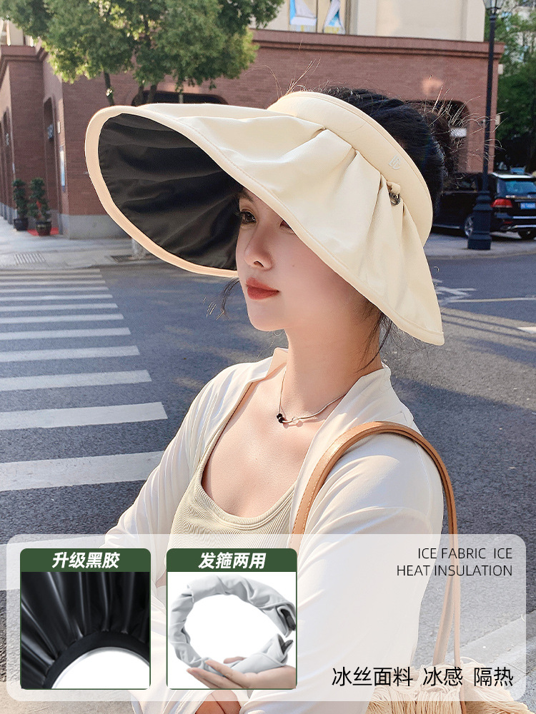 자외선 차단제 모자 여성용 여름 새로운 자외선 차단 빈 탑 햇 아이스 실크 블랙 접착제 큰 챙 얼굴 가리개 쉘 차양 모자스토어 가기