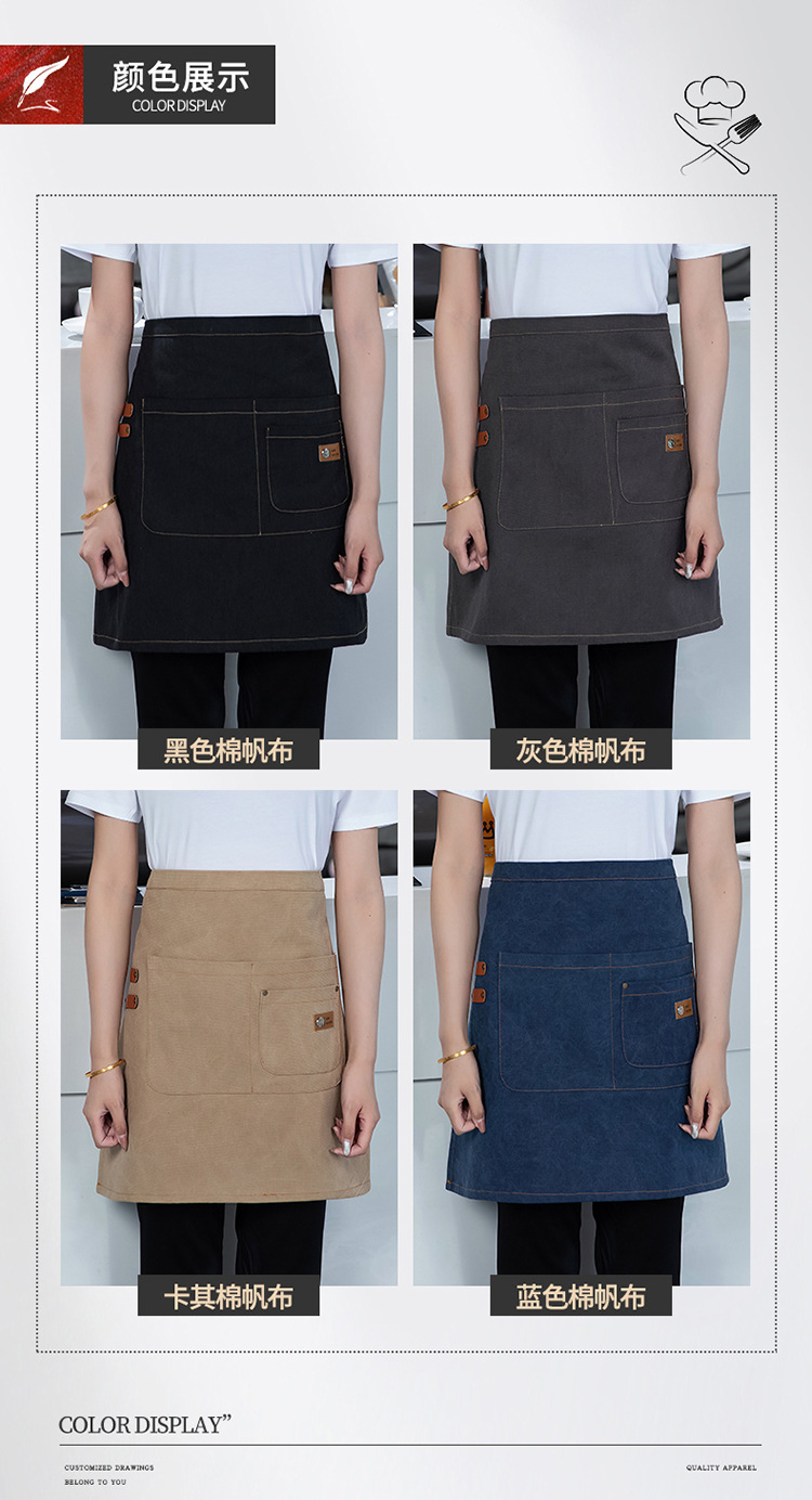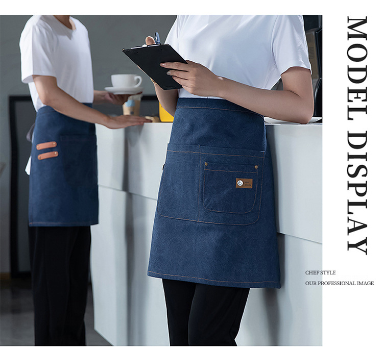 아마존 크로스 보더 반 길이 캔버스 남성용 커피 숍 앞치마 베이킹 짧은 허리 여성의 맞춤형 로고 작업복스토어 가기