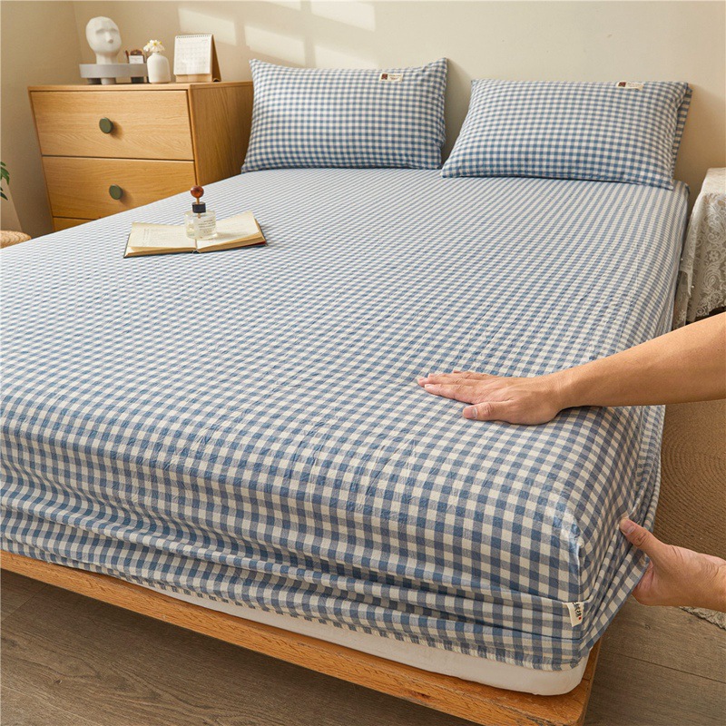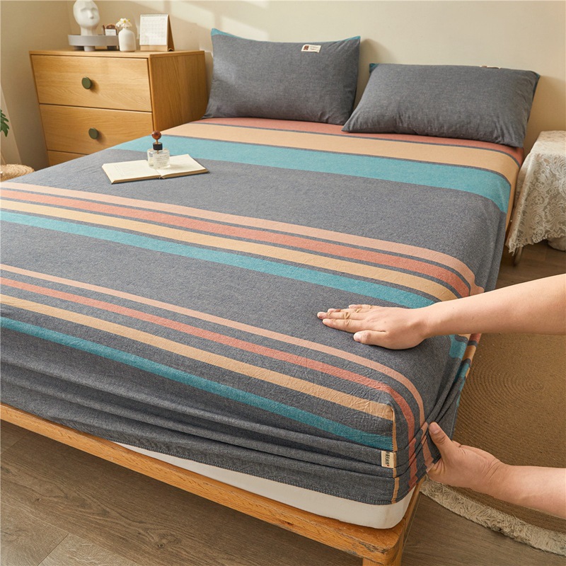 모자 및 유아 클래스 A 면사 염색 순면 세척 면 싱글 피스 침대 모자 100 신장 면 포 시즌 적합한 미끄럼 방지 침대 커버 세트스토어 가기