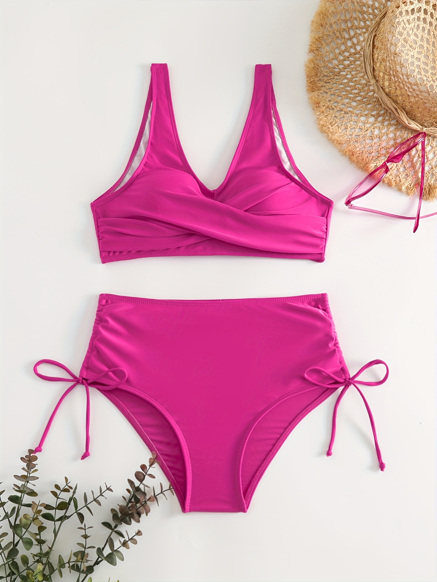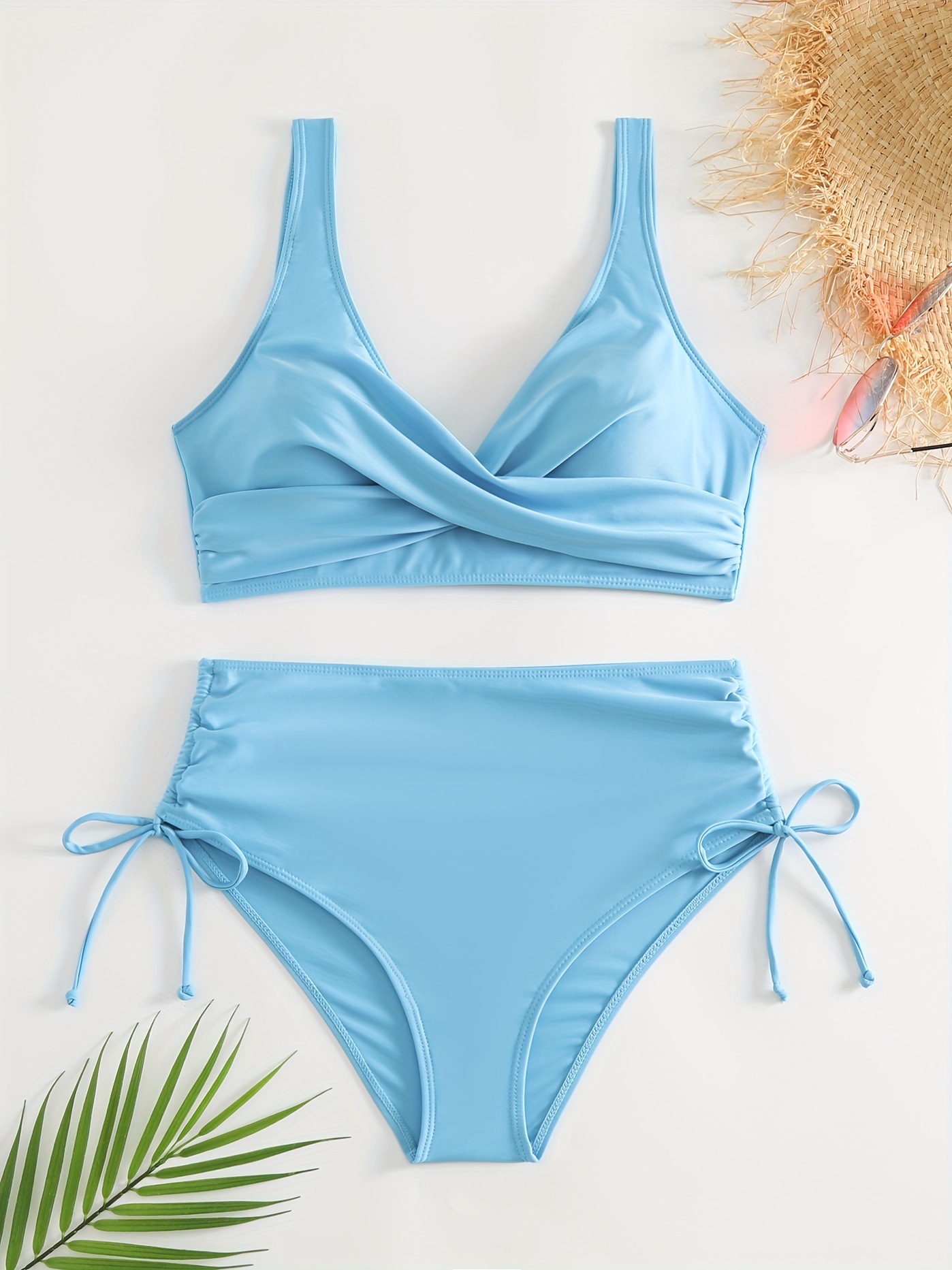 수영복 분할 비키니 단색 크로스 스트랩 아마존 폭발 하이 웨이스트 수영복 유럽과 미국 대외 무역 섹시한 비키니