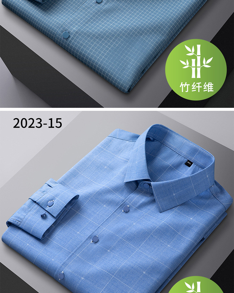 새로운 대나무 섬유 남성용 긴팔 셔츠, 고탄력 통기성 비즈니스 남성복, 전문가용 남성용 다림질 필요 없는 셔츠