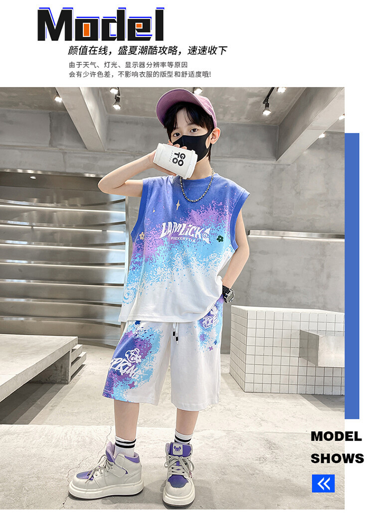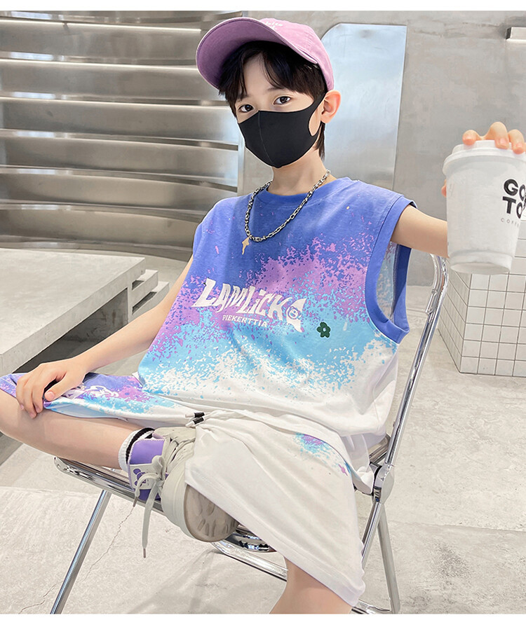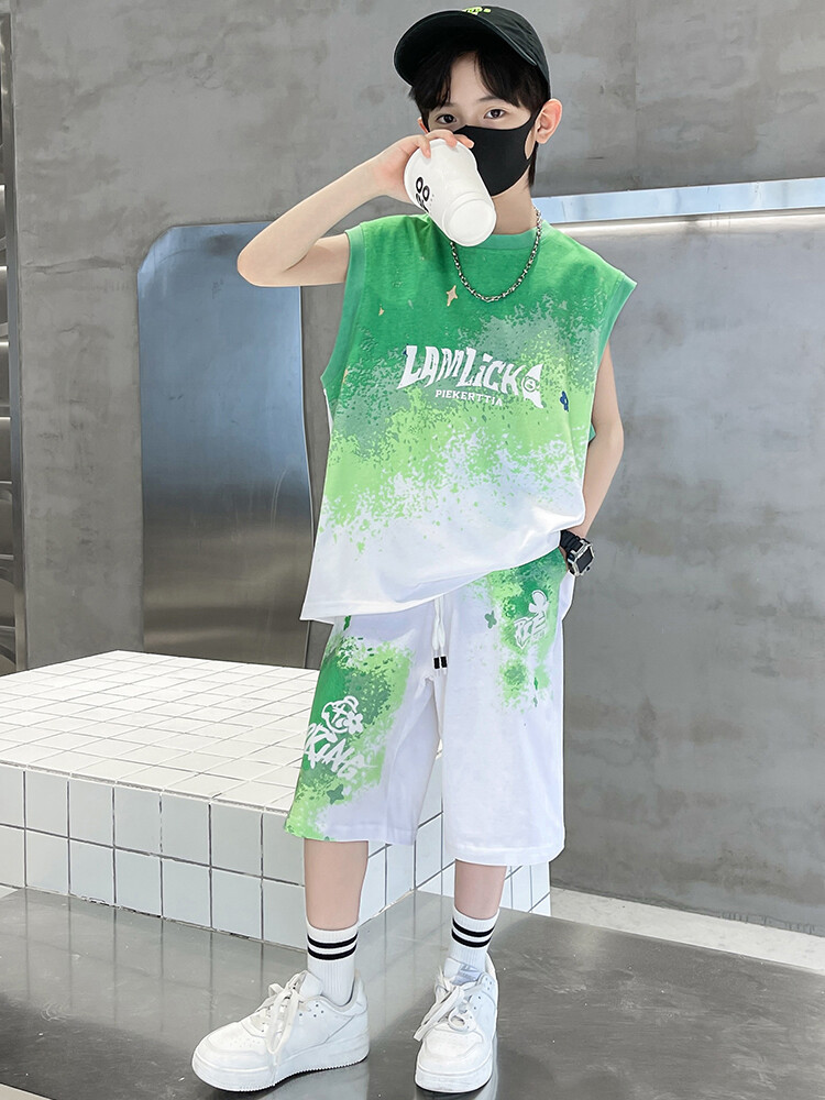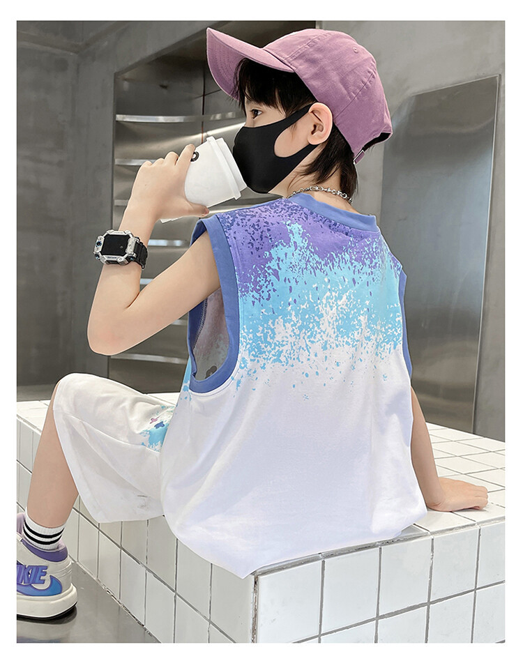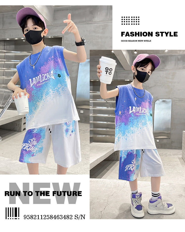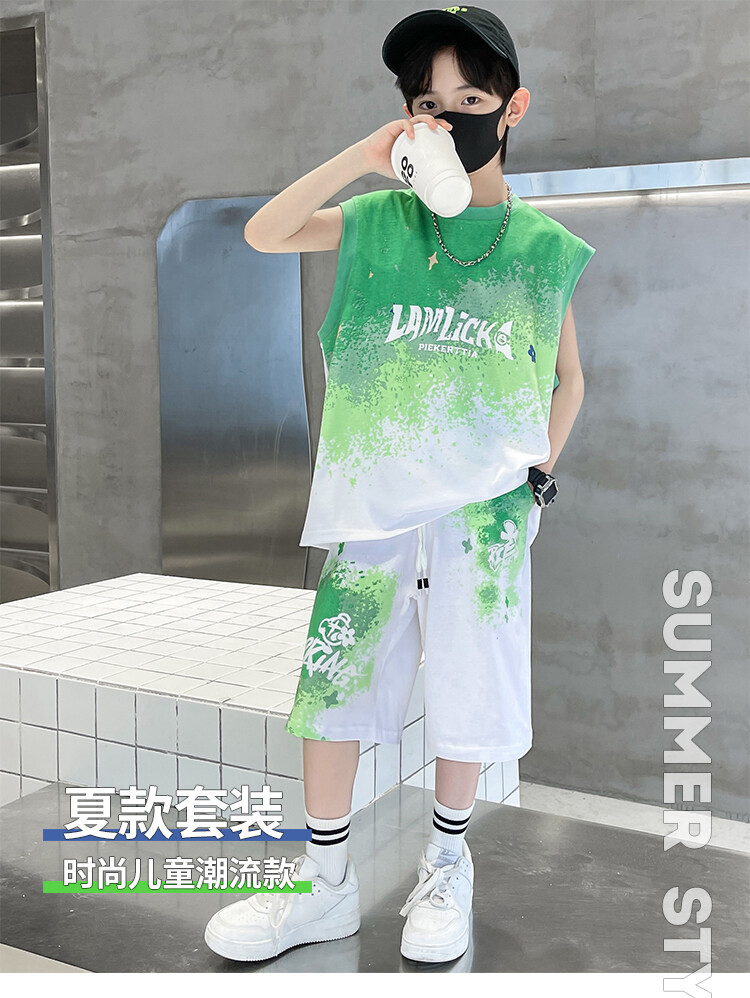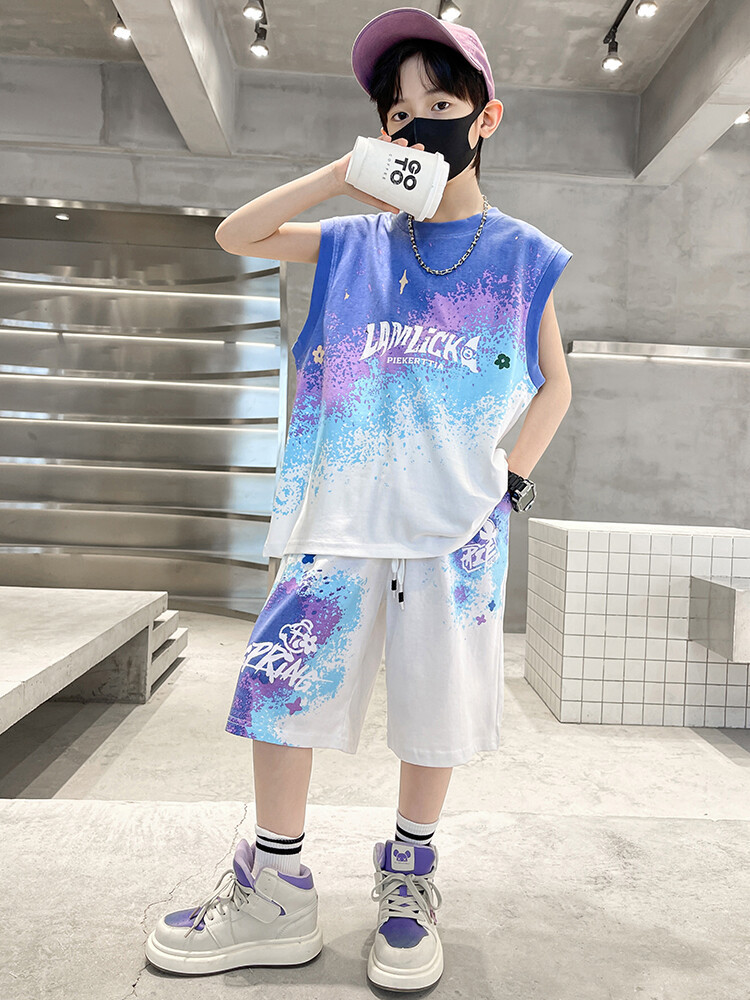 남아 티셔츠 세트 농구복 2025 중대형 어린이 민소매 여름옷 어린이 그라데이션 투피스 스포츠 스타일스토어 가기