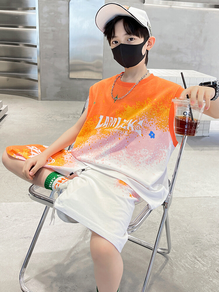 남아 티셔츠 세트 농구복 2025 중대형 어린이 민소매 여름옷 어린이 그라데이션 투피스 스포츠 스타일
