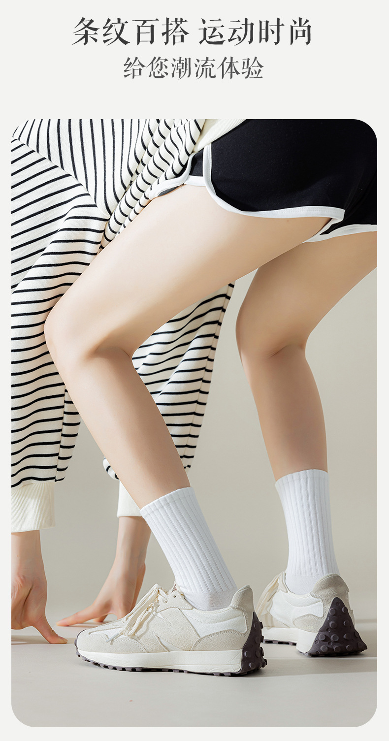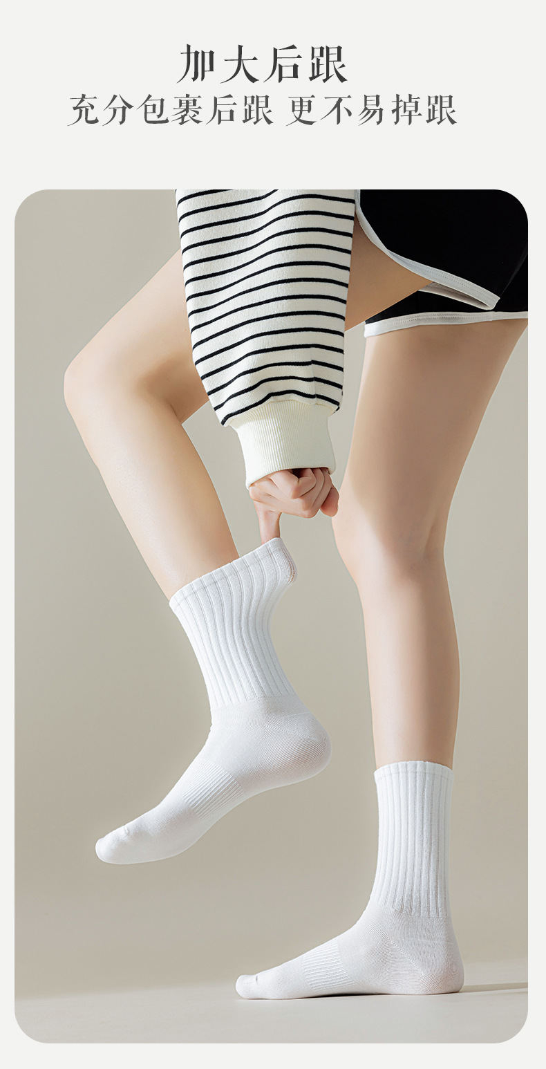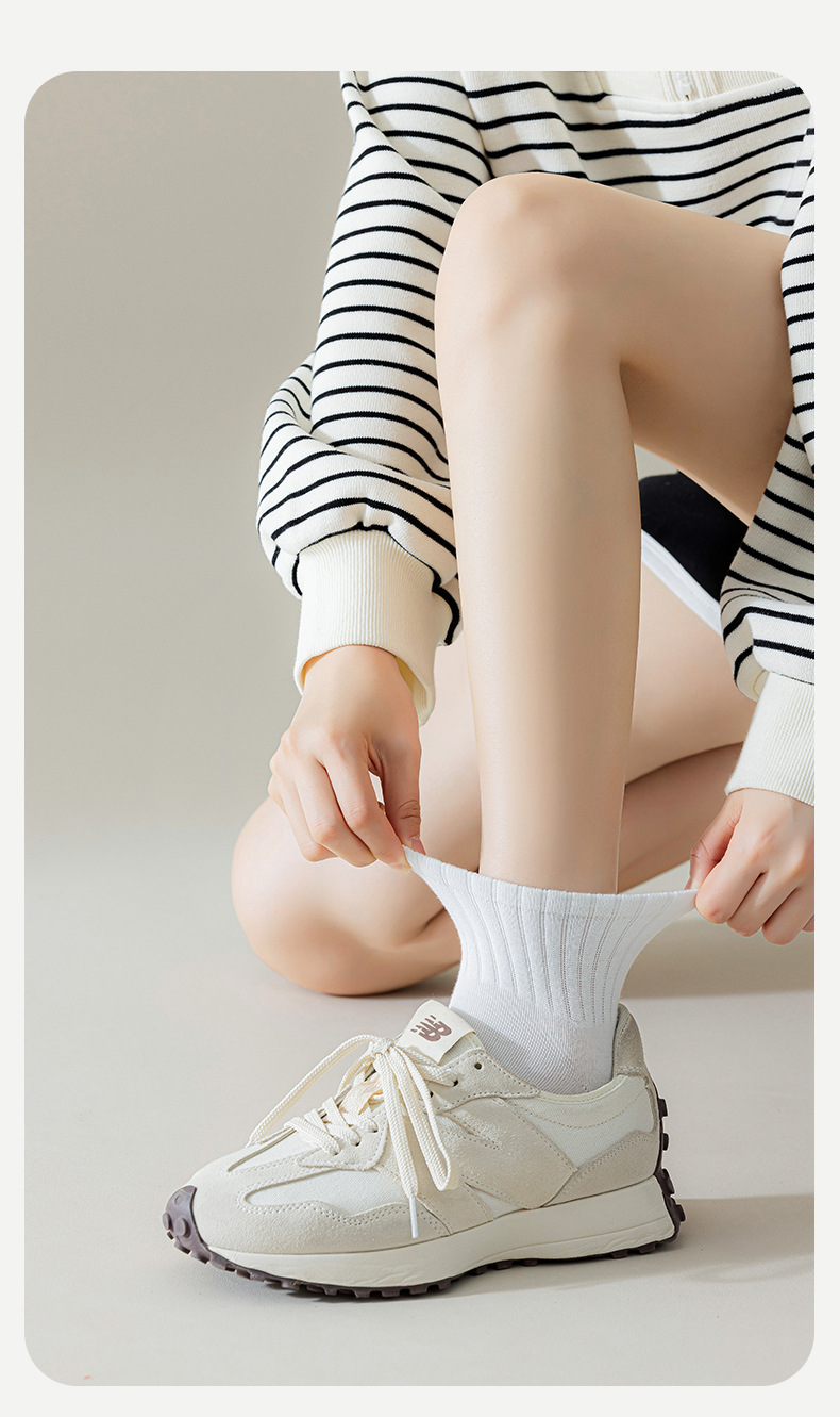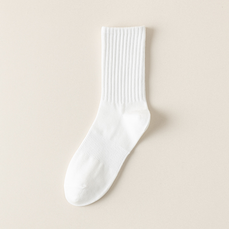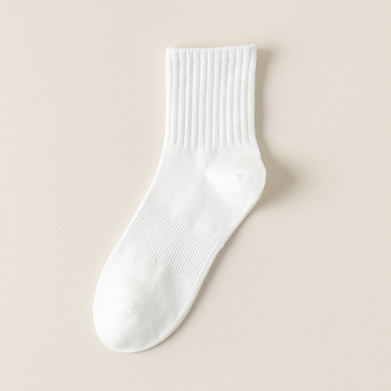 흰색 양말 여성용 중간 길이 양말 단색 스포츠 양말 여름 얇은 면 흡한 통기성 다용도 대학 스타일 긴 양말