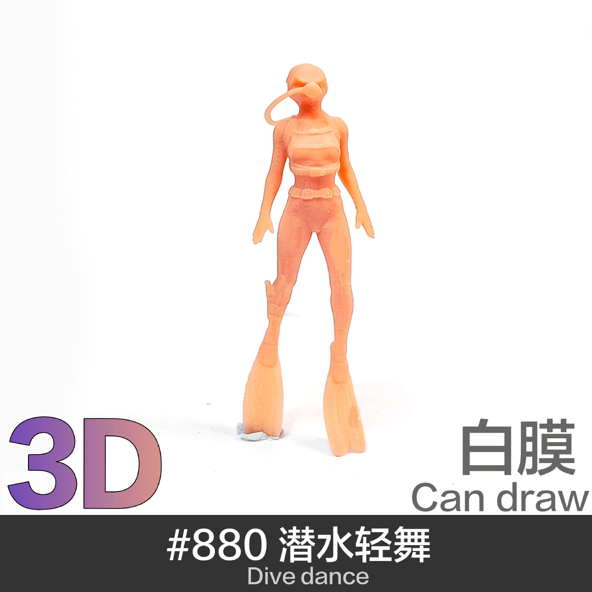 1:64 마이크로 풍경 마이크로 축소 인형 해양 동물 다이버 화이트 필름 미니 모델 소형 장식품 다이빙