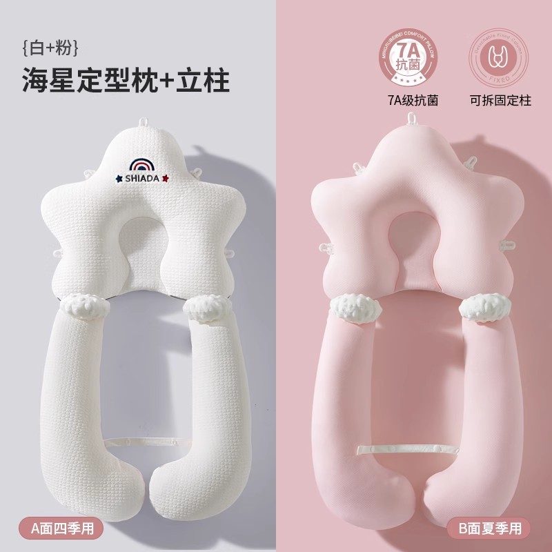 • 불가사리 모양의 베개 - 화이트 & 핑크 고정 기둥 포함 [7A 항균]