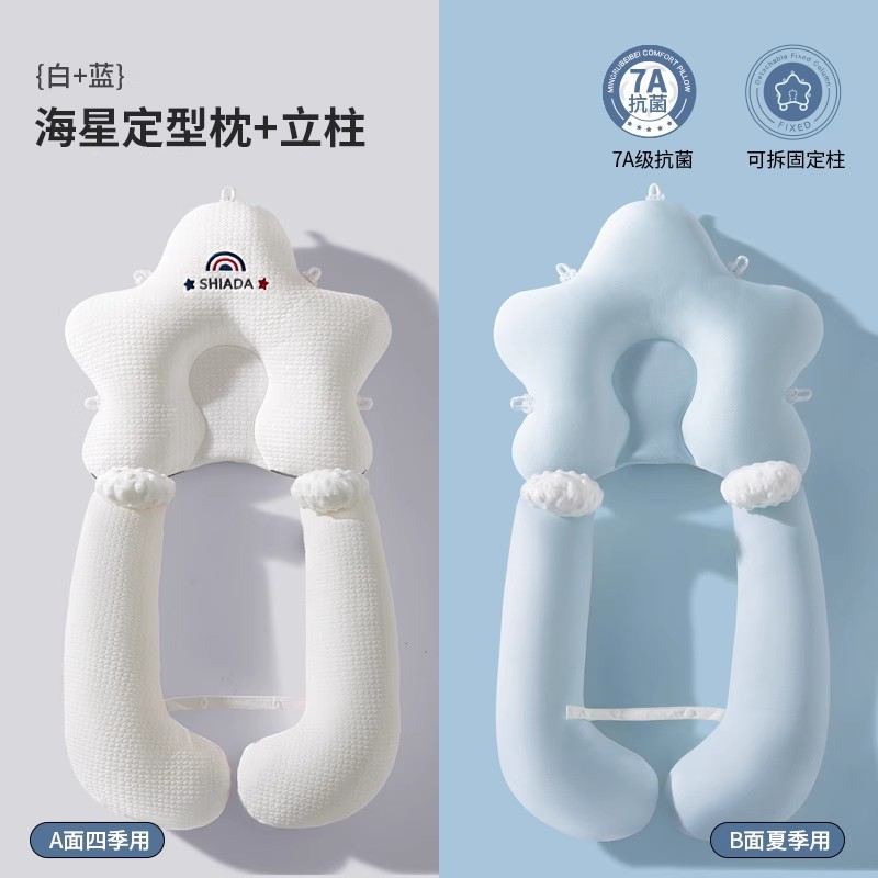 • 불가사리 모양의 베개 - 흰색과 파란색 고정 기둥 포함 [7A 항균]
