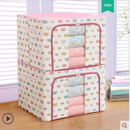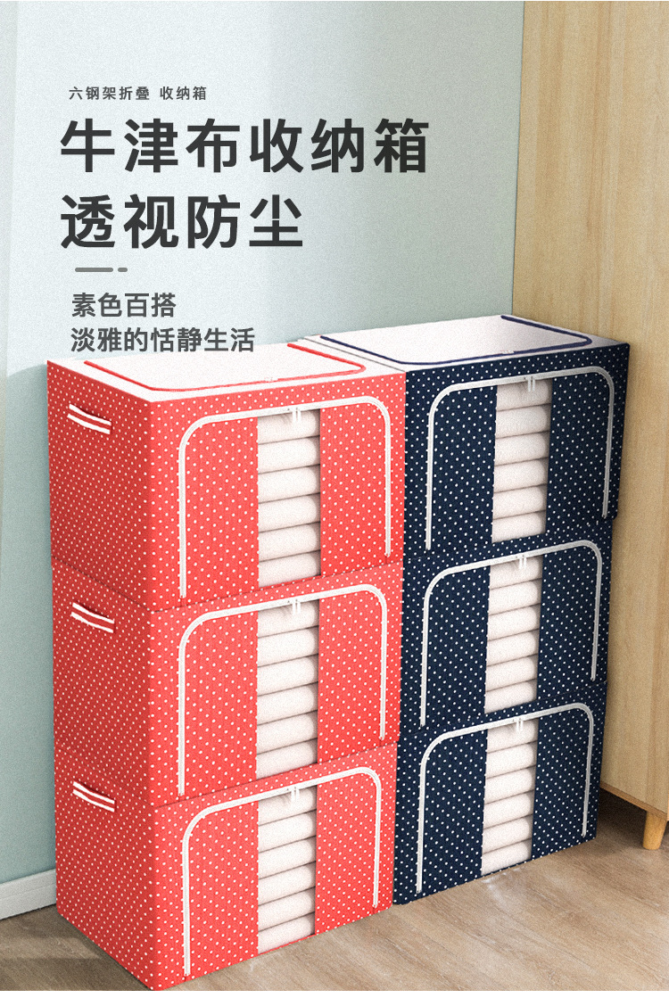 옥스포드 천 이불 보관 상자 접이식 가정용 옷장 강철 프레임 보관 상자 가정용 대용량 이동 및 정리 상자