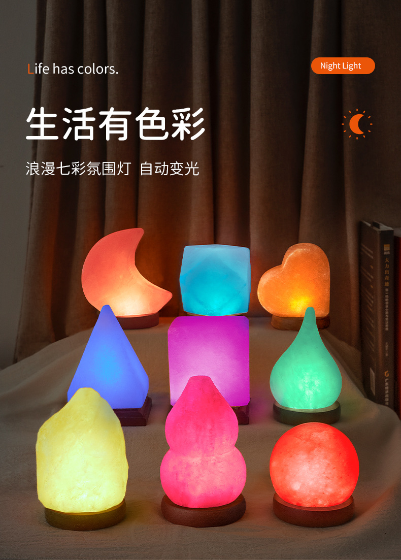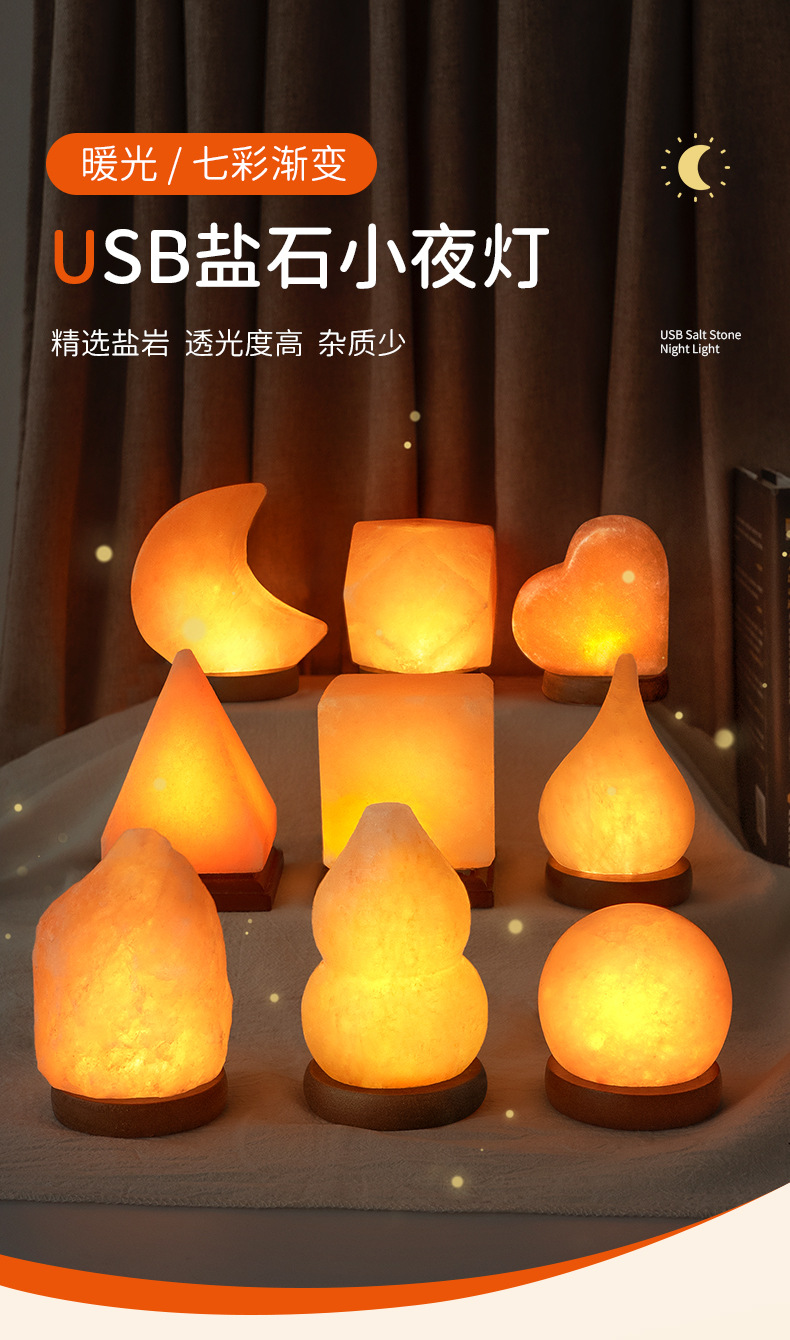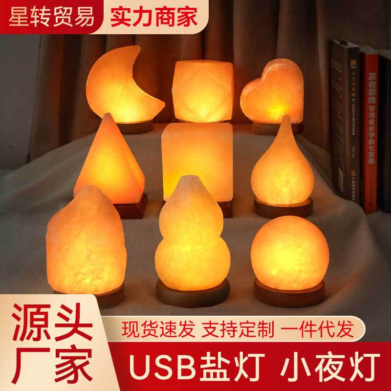 소금등 USB 야간등 보물통 피라미드 호리병형 구형 천연 침대 옆 장식품 로즈솔트 스톤 집 정화 장식품