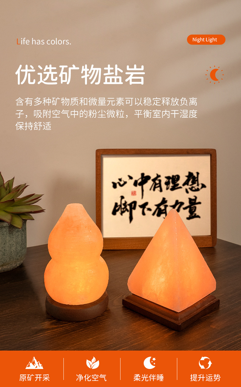소금등 USB 야간등 보물통 피라미드 호리병형 구형 천연 침대 옆 장식품 로즈솔트 스톤 집 정화 장식품스토어 가기