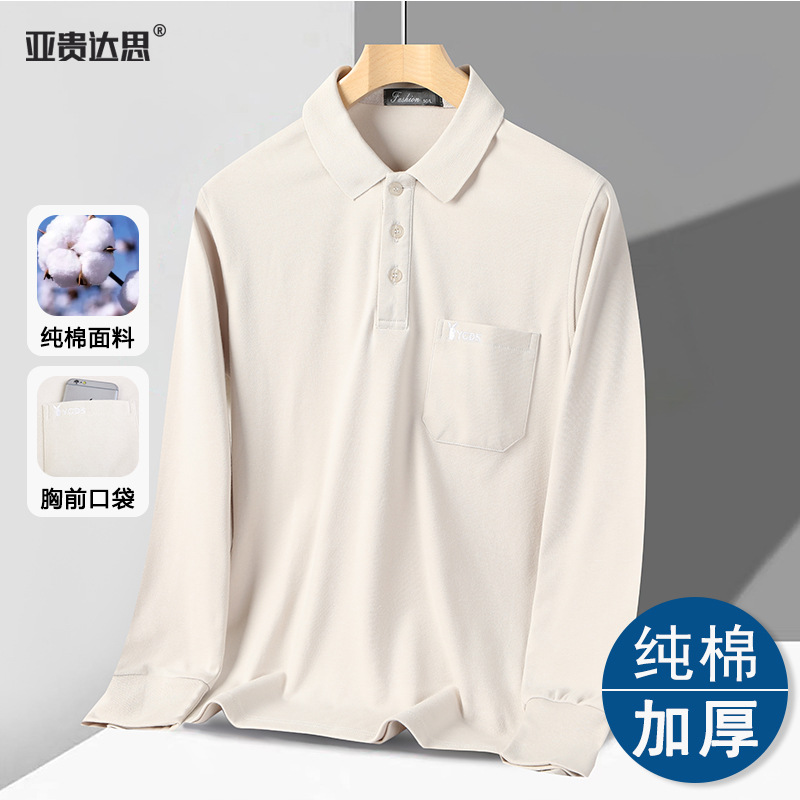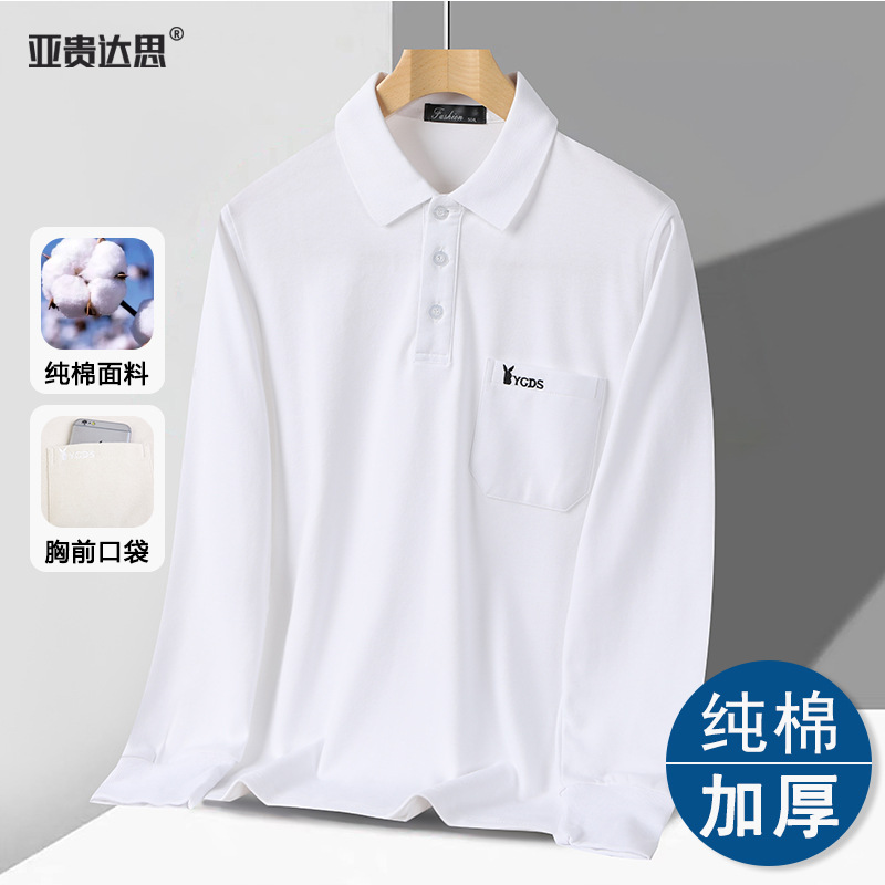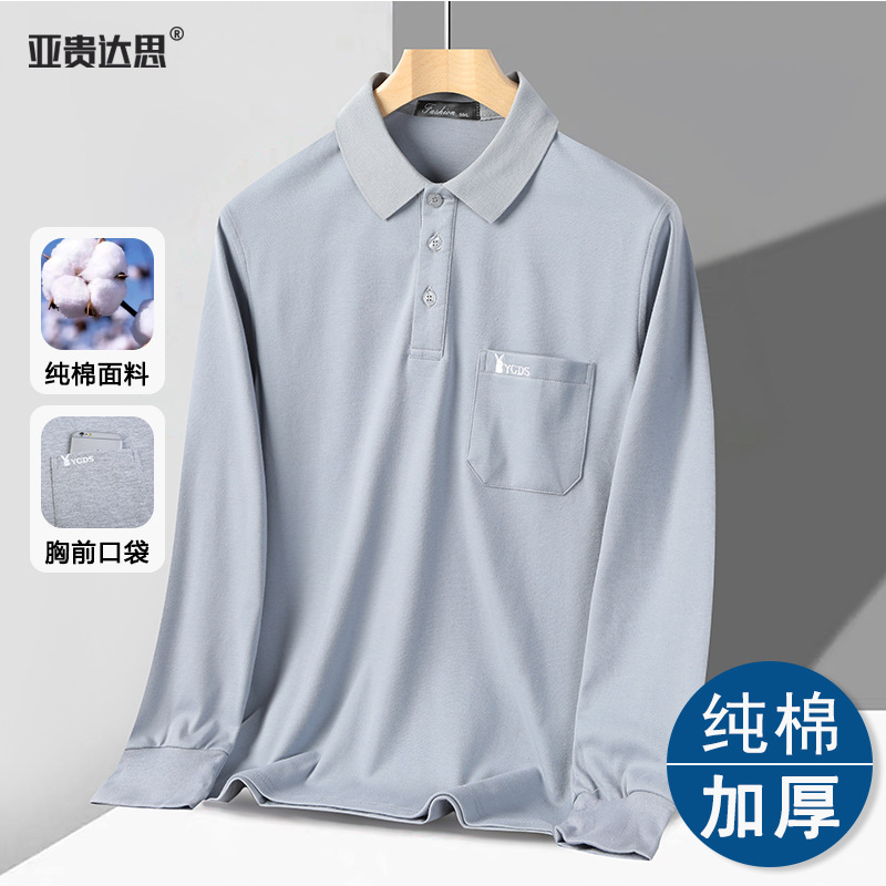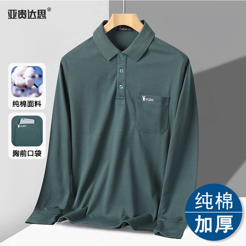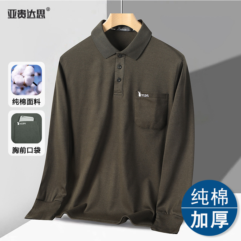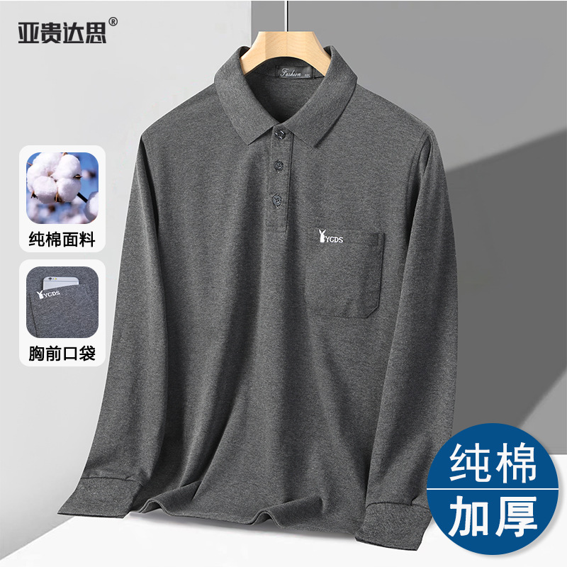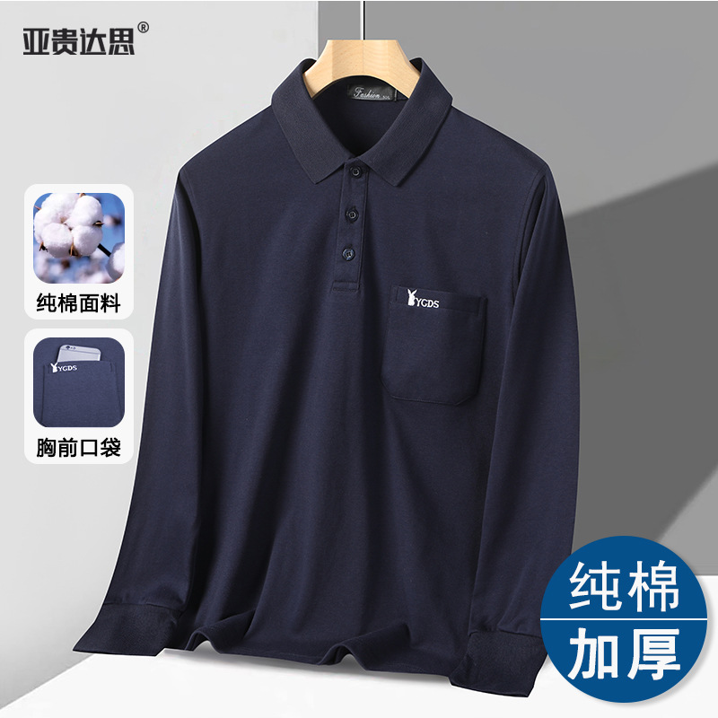 중년 및 노인 남성용 긴팔 티셔츠 순면 포켓 라펠 폴로 셔츠 플러스 사이즈 베이스 셔츠 할아버지 아빠 봄과 가을 의류