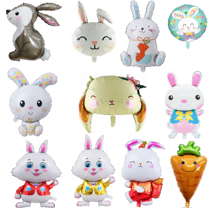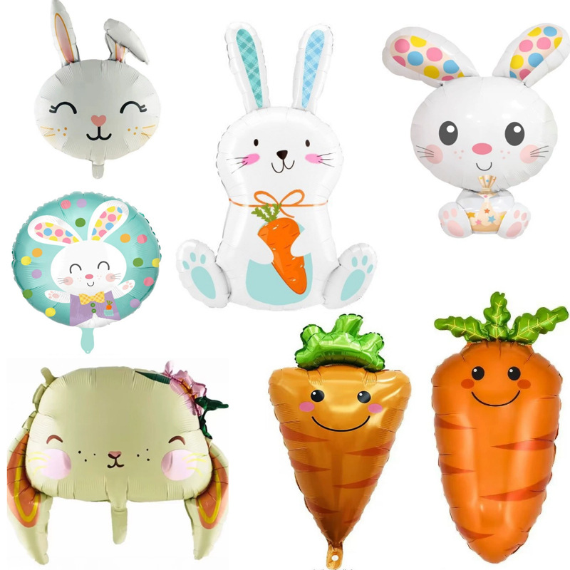 토끼 알루미늄 필름 풍선 다채로운 토끼 모양 풍선 어린이 생일 파티 장식 당근 동물 풍선