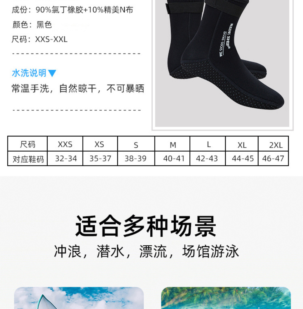 RIDESHIP/라이딩 선박 3mm 다이빙 양말 + 다이빙 양말 남자 수영 여성용 따뜻한 딥 다이빙 스노클링 양말 해변스토어 가기