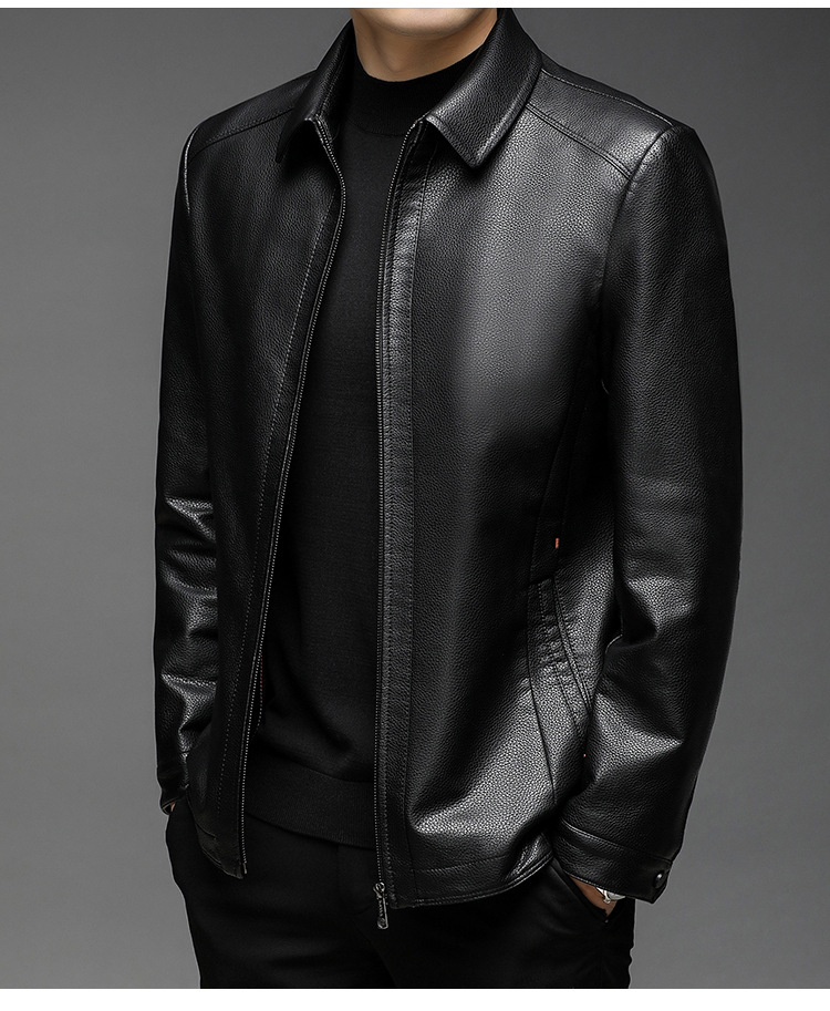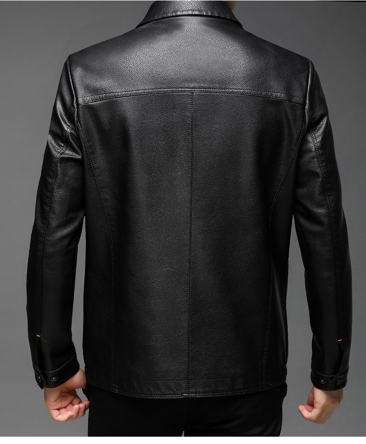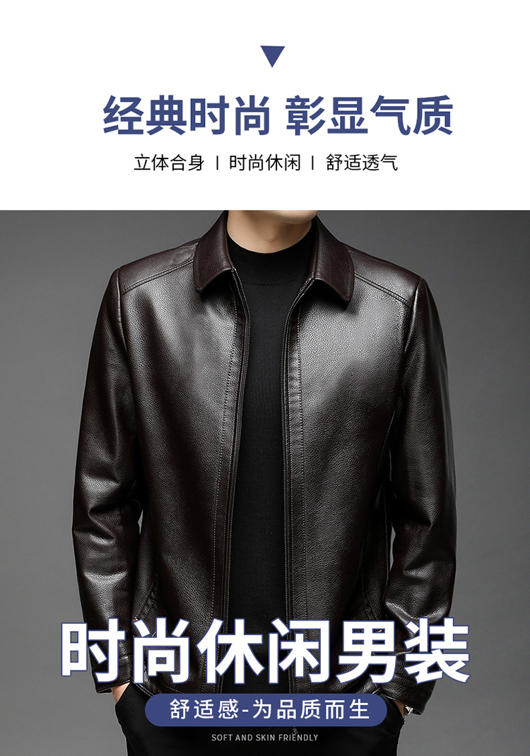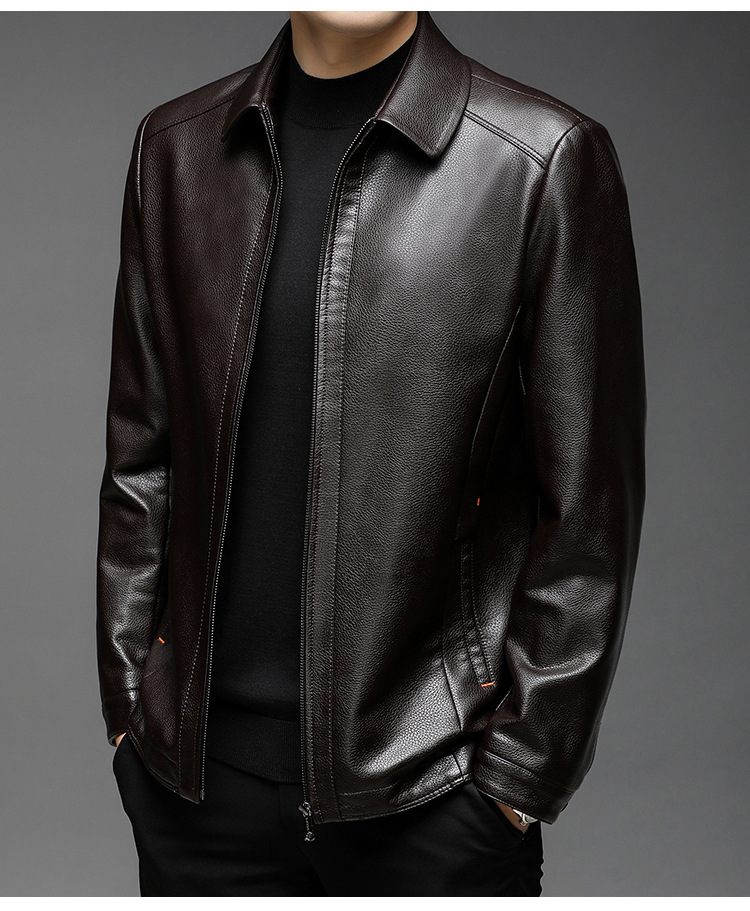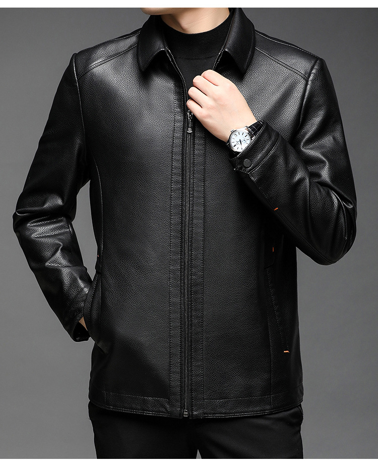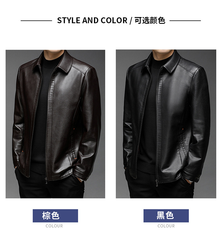 남자의 가죽 자켓 남자의 2023 가을 새로운 중년 패션 비즈니스 라펠 기모 캐주얼 남자의 가죽 자켓스토어 가기