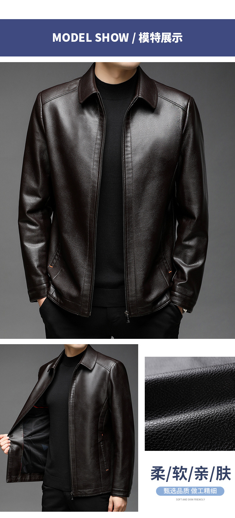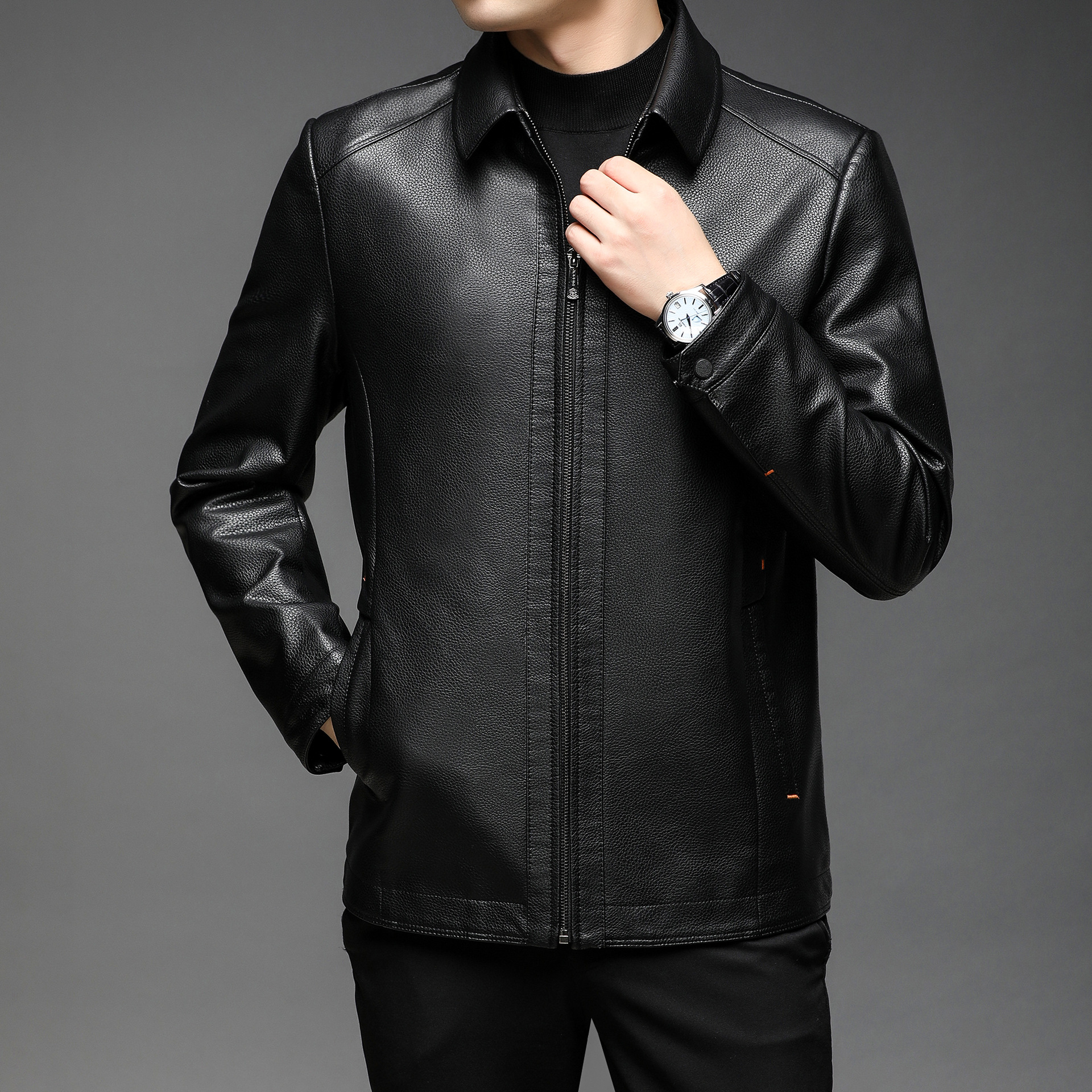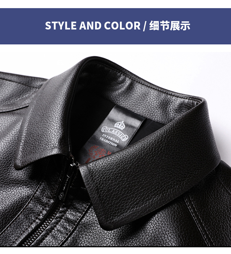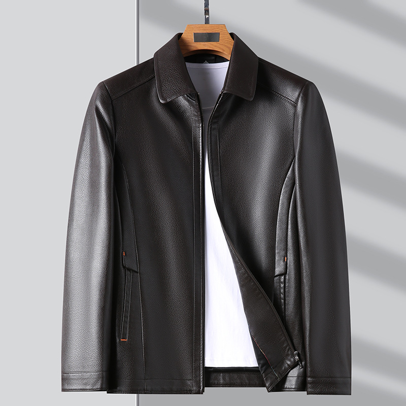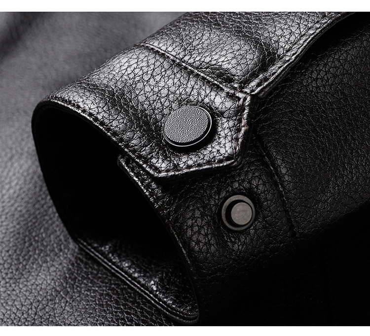 남자의 가죽 자켓 남자의 2023 가을 새로운 중년 패션 비즈니스 라펠 기모 캐주얼 남자의 가죽 자켓스토어 가기