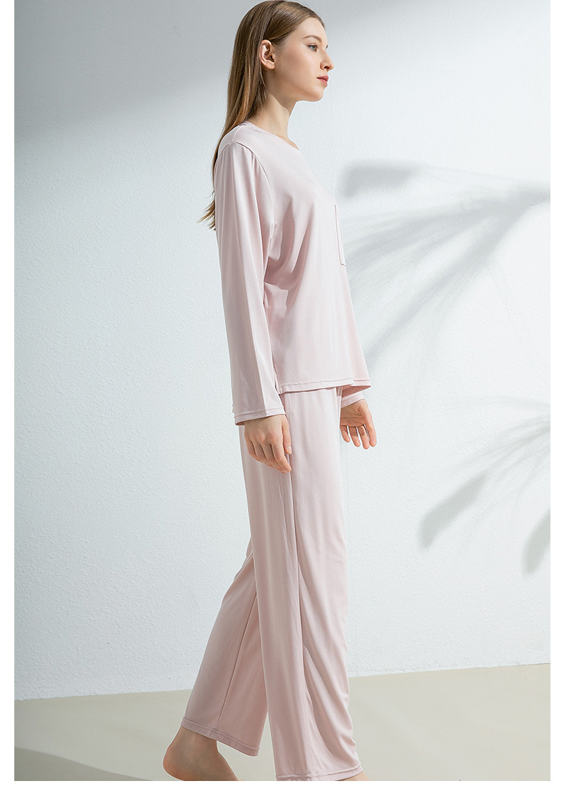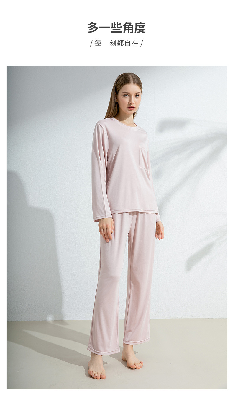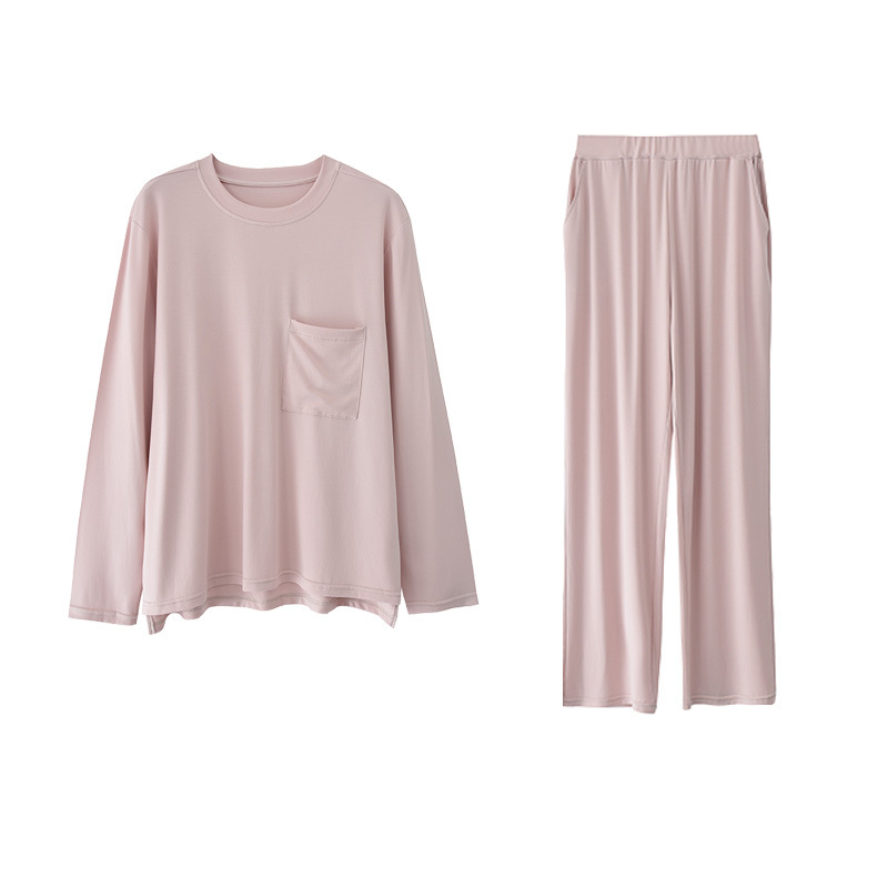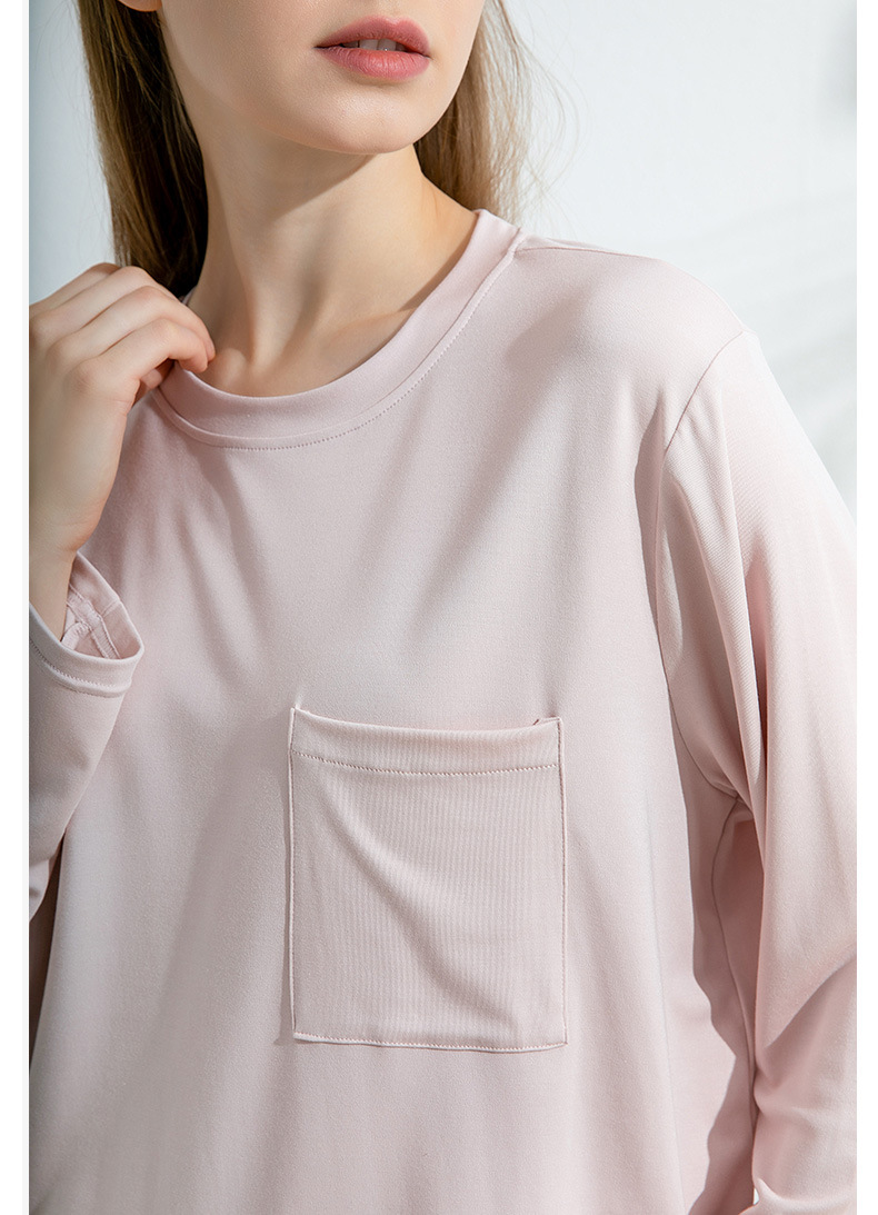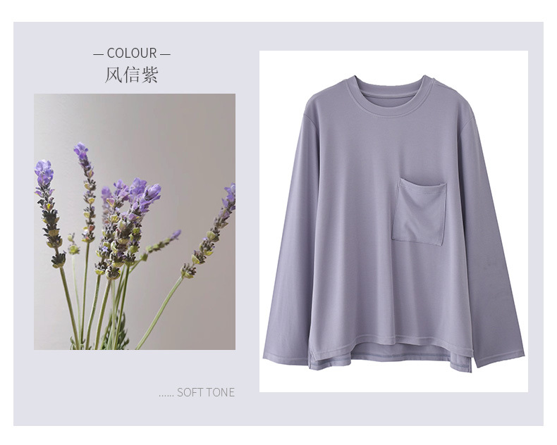 봄과 가을 80 란징 모달 숙녀 집 옷 둥근 목 솔리드 컬러 느슨한 편안한 긴 소매 외주스토어 가기