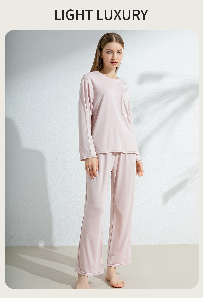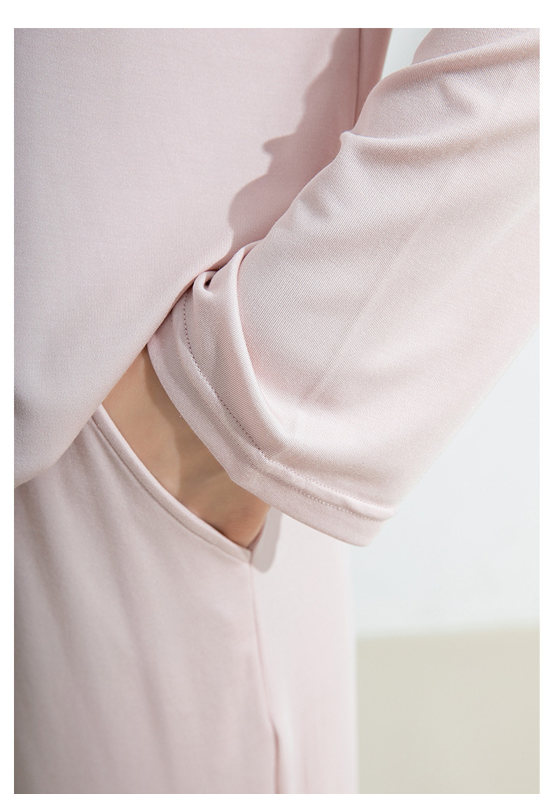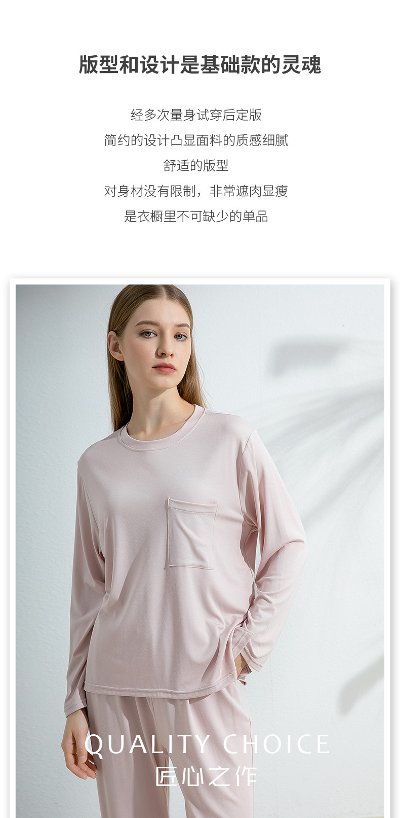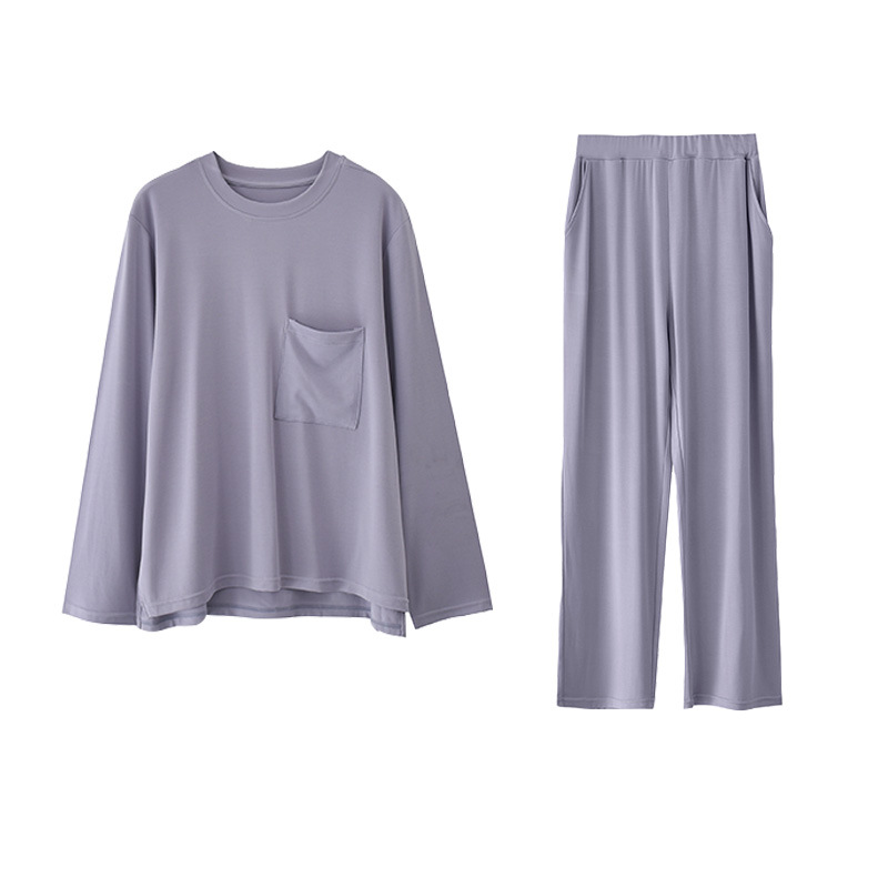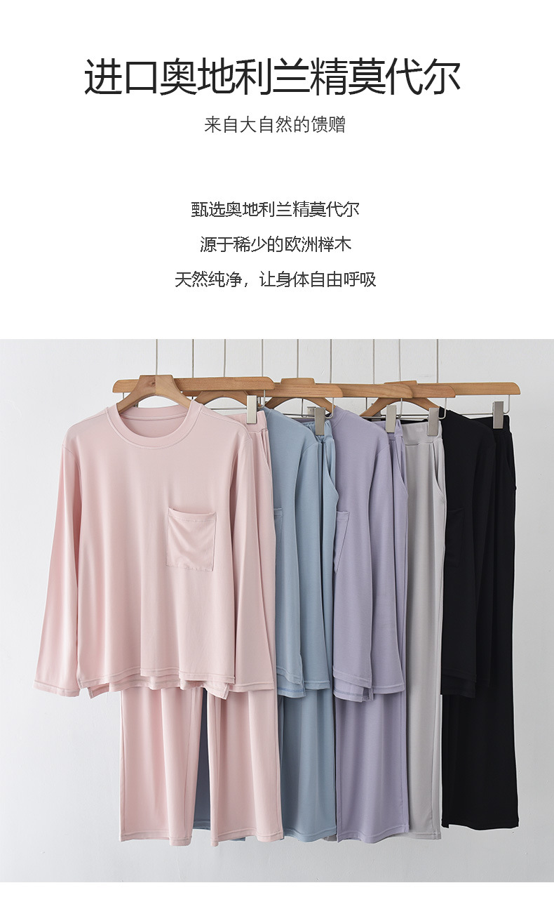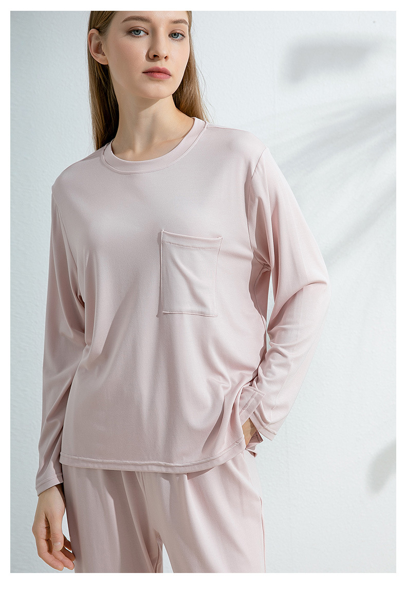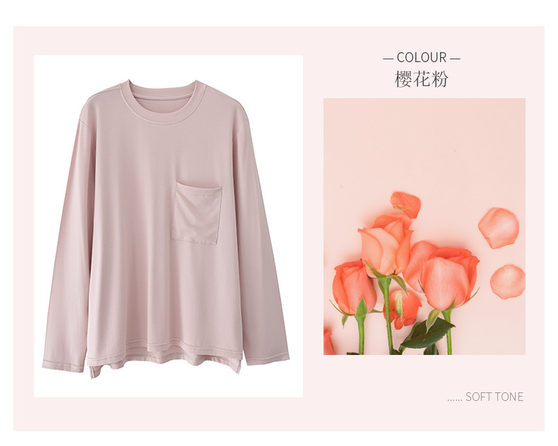 봄과 가을 80 란징 모달 숙녀 집 옷 둥근 목 솔리드 컬러 느슨한 편안한 긴 소매 외주