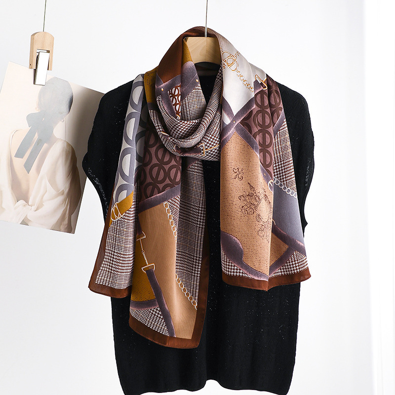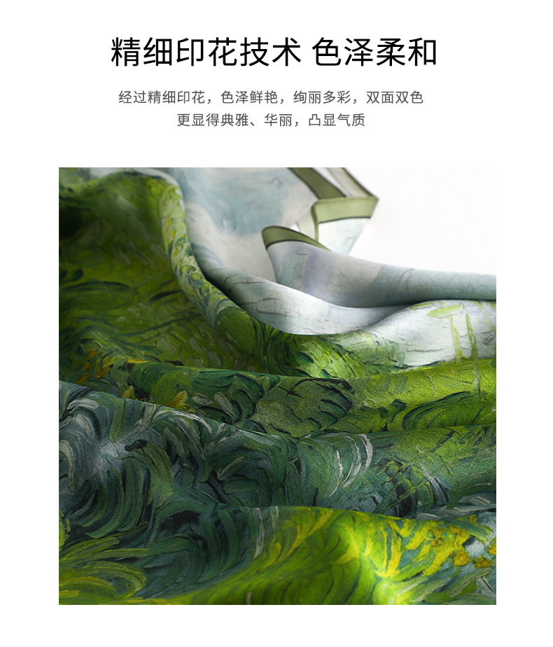 녹색 목가적 스타일 뽕나무 실크 고급 실크 인쇄 얇은 긴 스카프 우아한 실크 스카프 어머니를위한 이중 사용 숄스토어 가기
